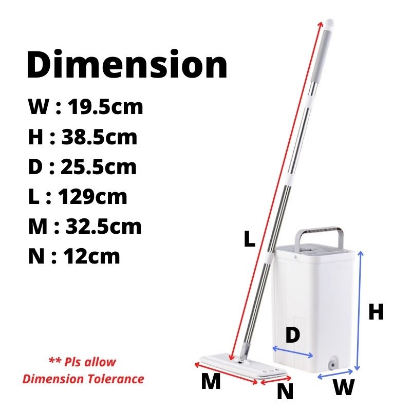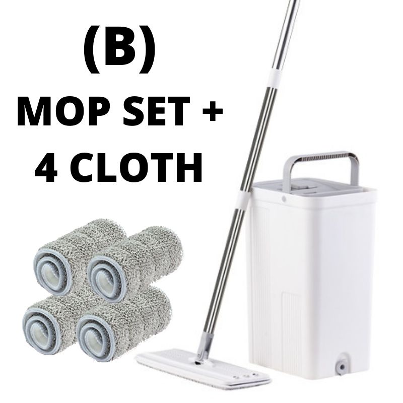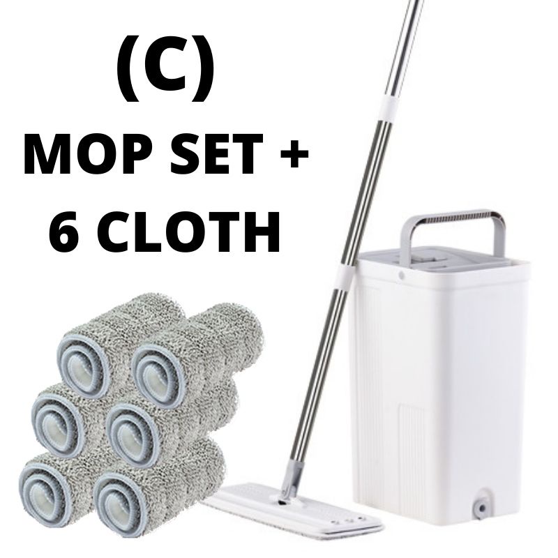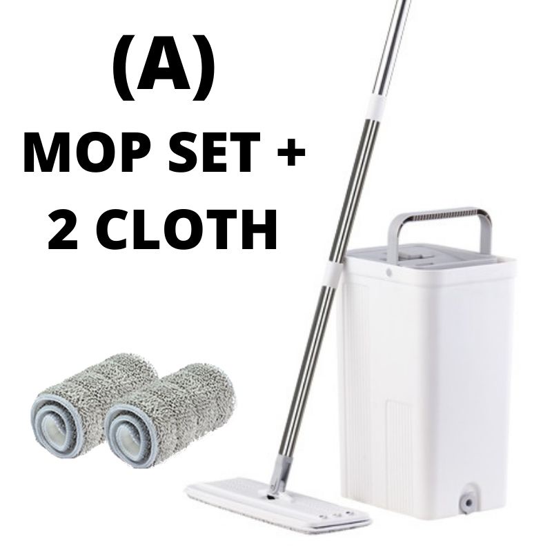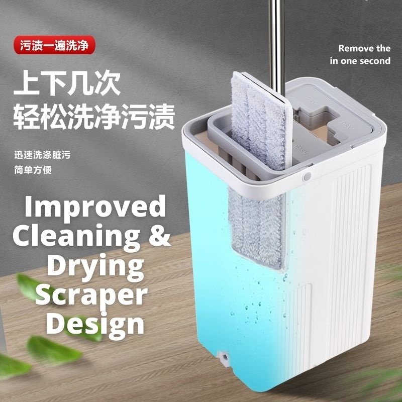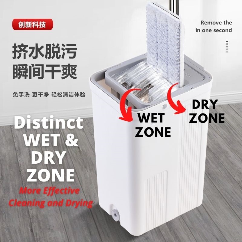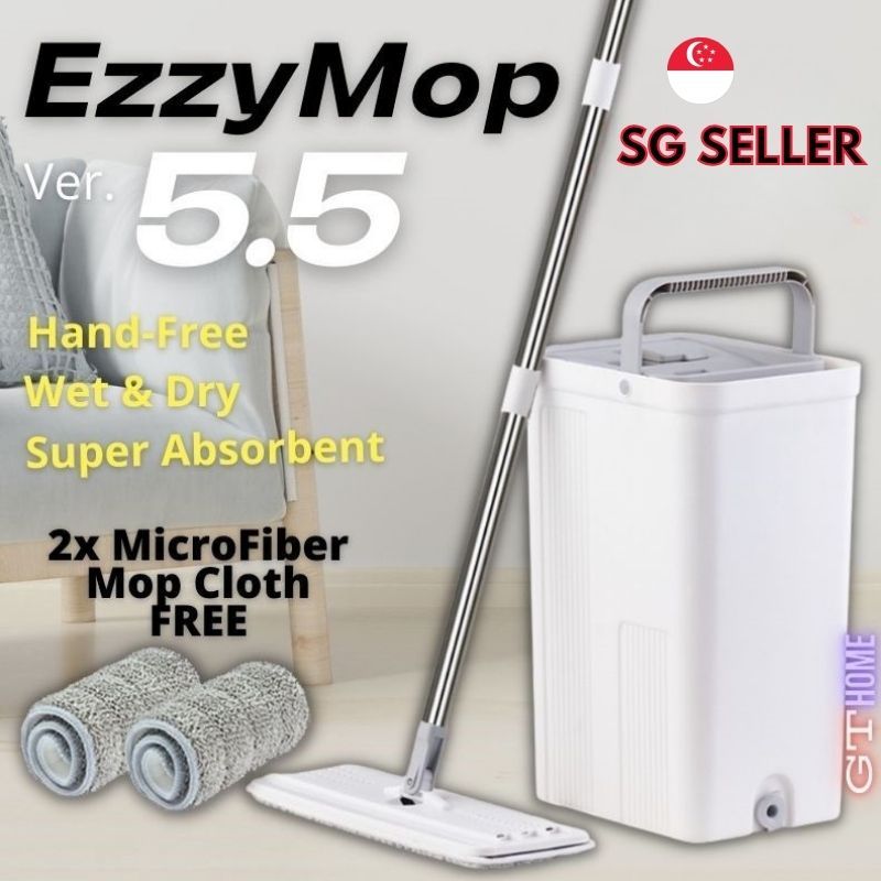 Mop and Bucket Ezzymop 5.5 with Micro Fiber Cleaning Cloth Hands free easy to mop Flat mop -SG ready stock