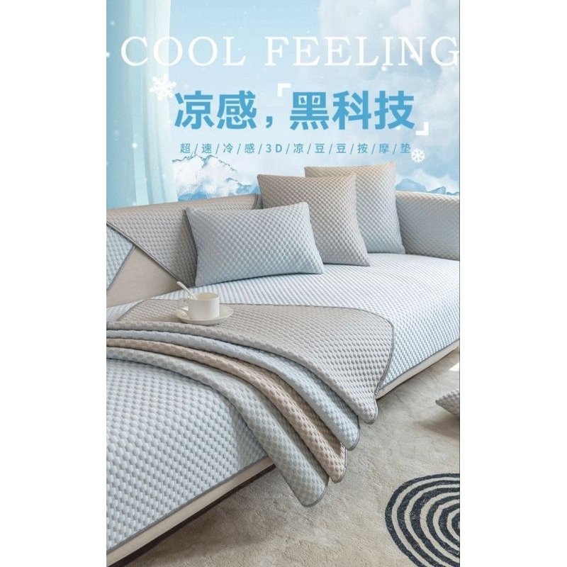 【Local seller】Ice Silk Cool Sofa Cushion Sofa Protective Cover 1/2/3/4 seaters Icy cool fabric