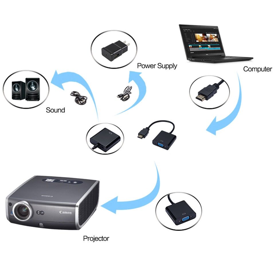 POM Converter HDMI to VGA Original Ori Computer Laptop Projector Connector Plug and Play Connector