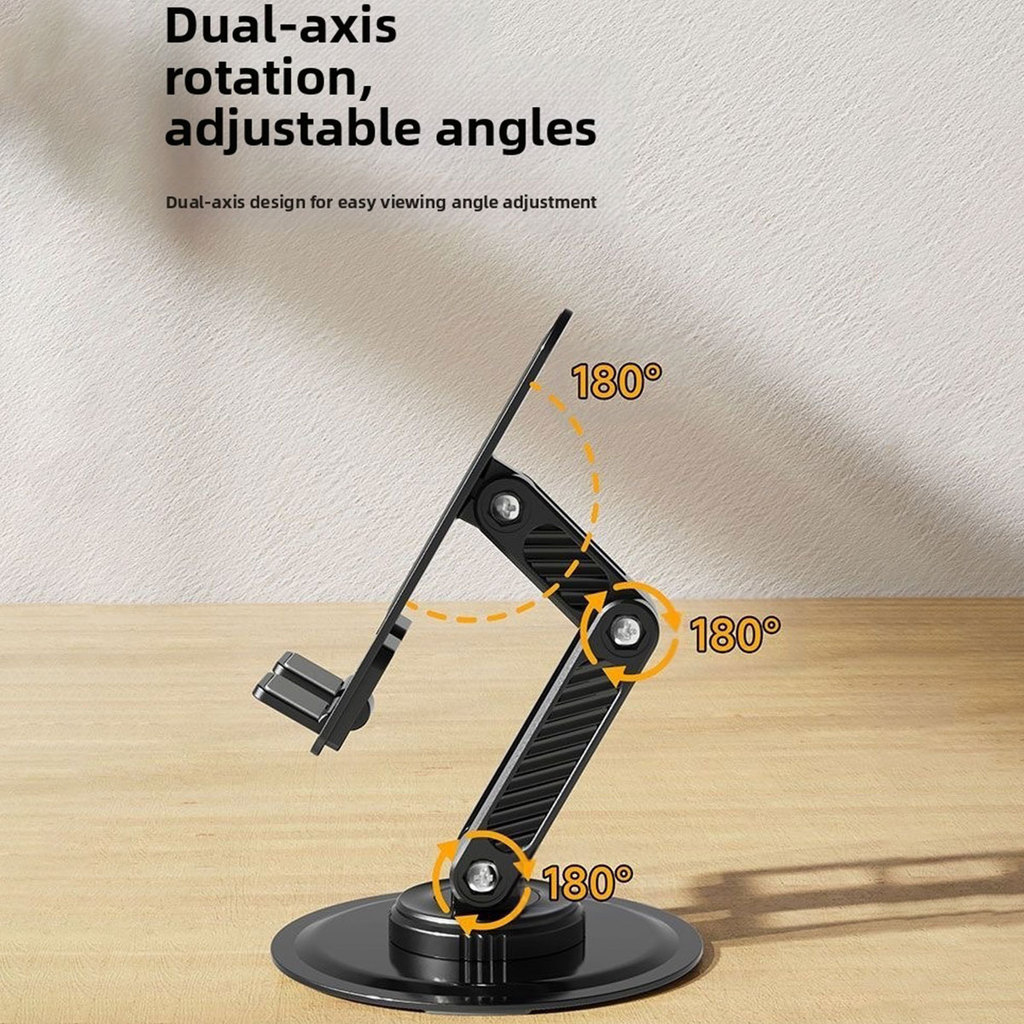 Carbon Steel Tabletop Tablet & Phone Stand, Strong Support Dual-Axis Rotation Adjustable Stand, Foldable Desktop Device Holder, Universal for Home & Office Use