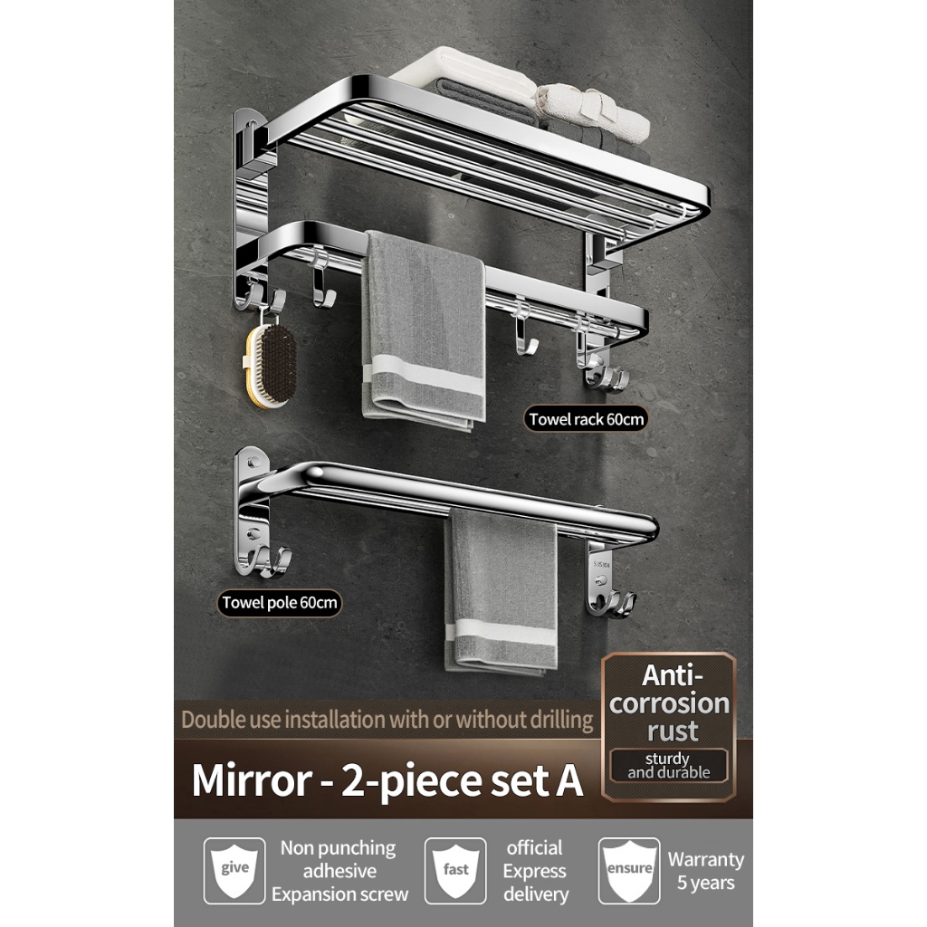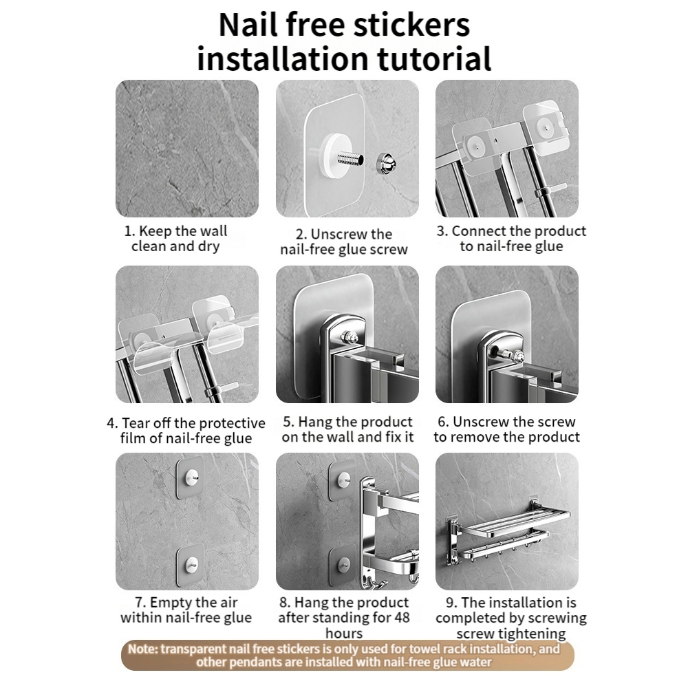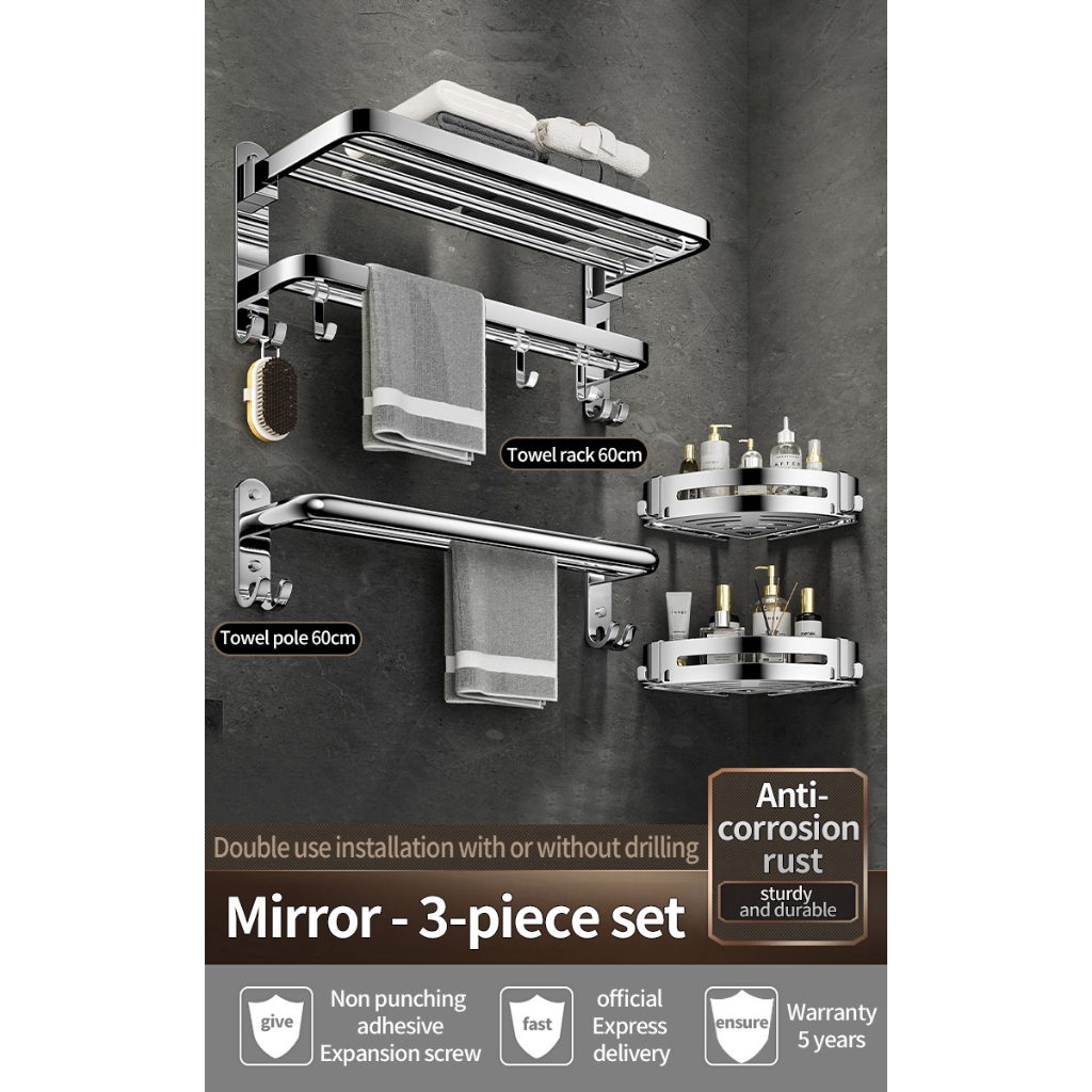 Cocolorrr No Drill Stainless Steel Bathroom Towel Rack Bathroom Shampoo Shelves Hanger