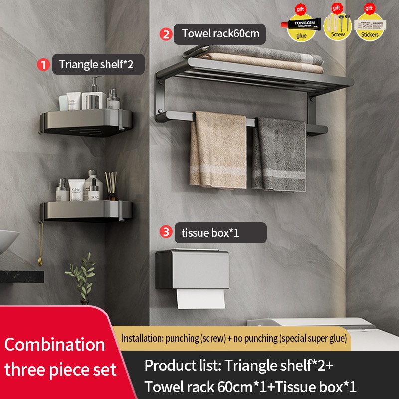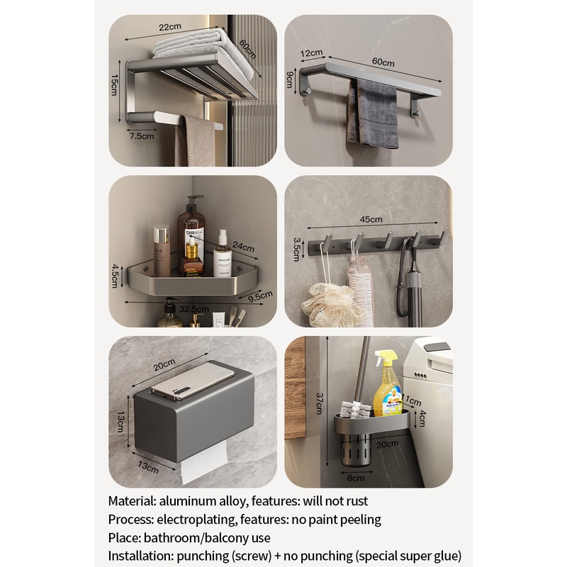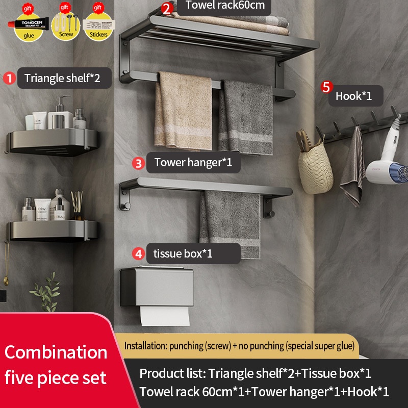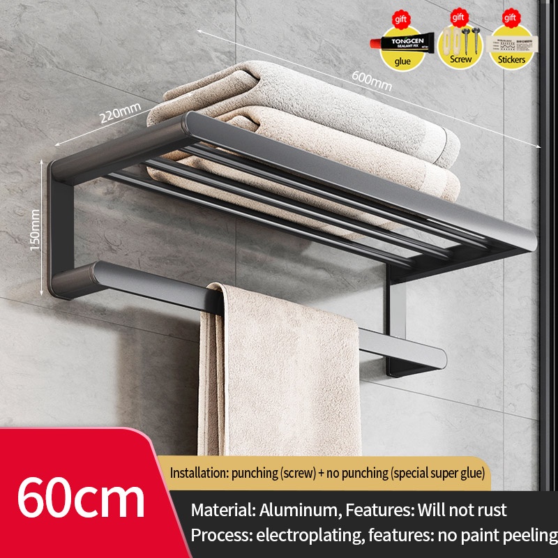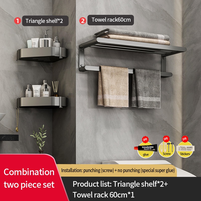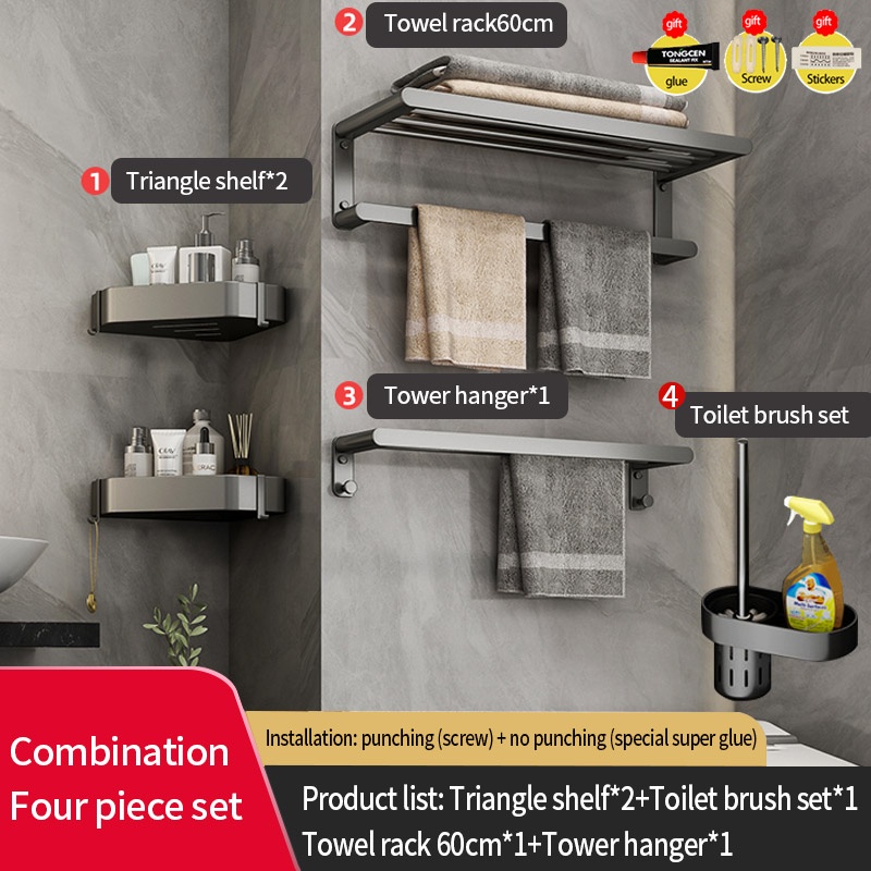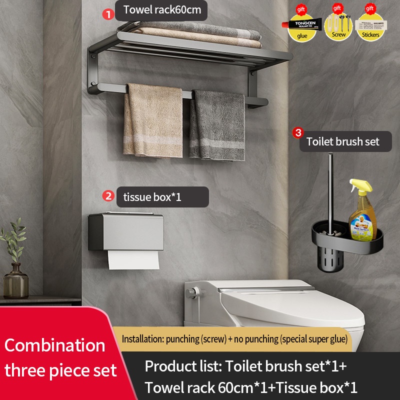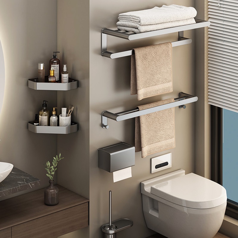 COCOLORRR Grey Toilet Rack Bathroom Storage Towel Rack Hardware Folding Hair Dryer Holder Bathroom