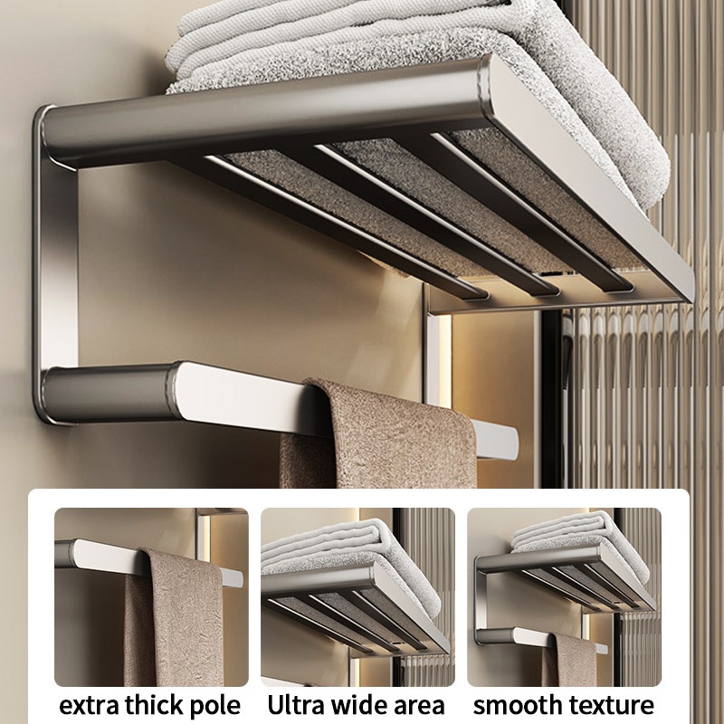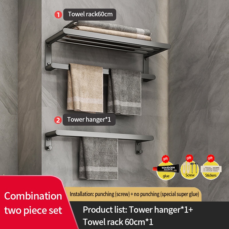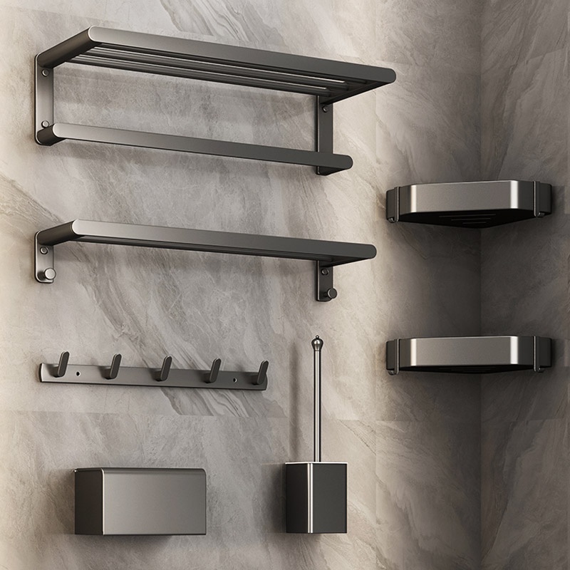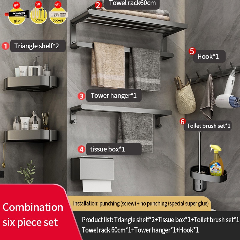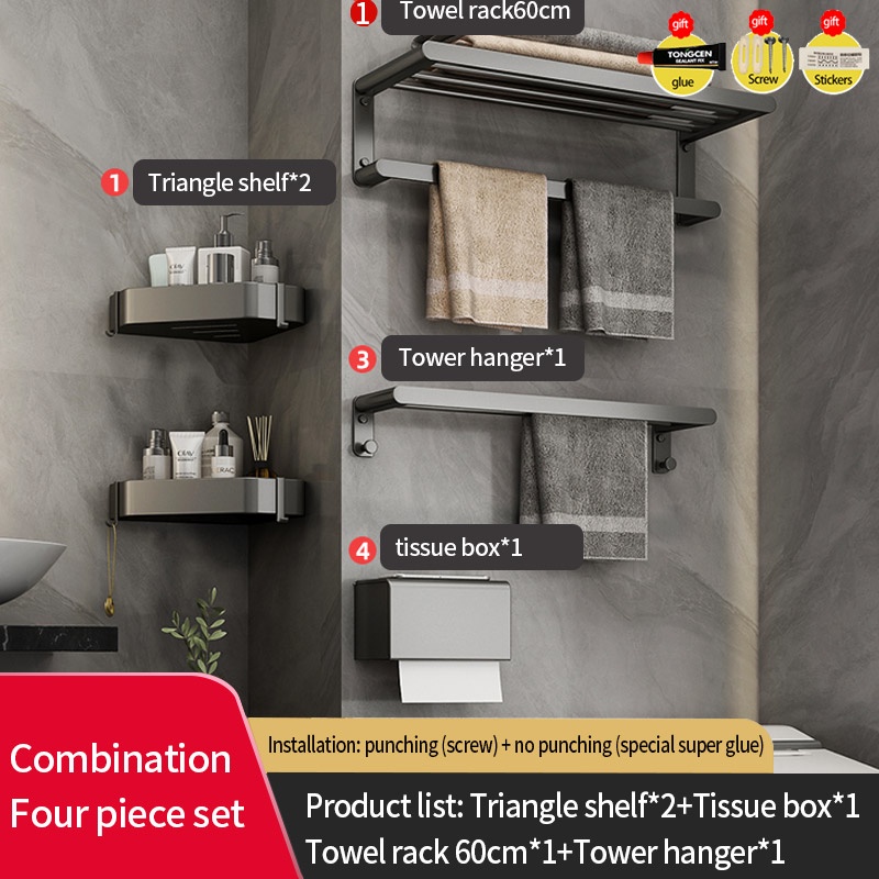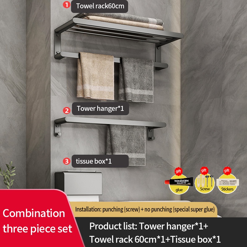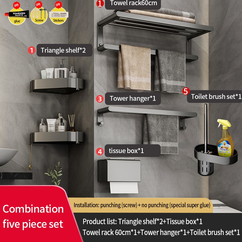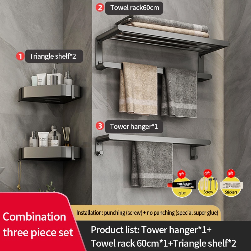 COCOLORRR Grey Toilet Rack Bathroom Storage Towel Rack Hardware Folding Hair Dryer Holder Bathroom