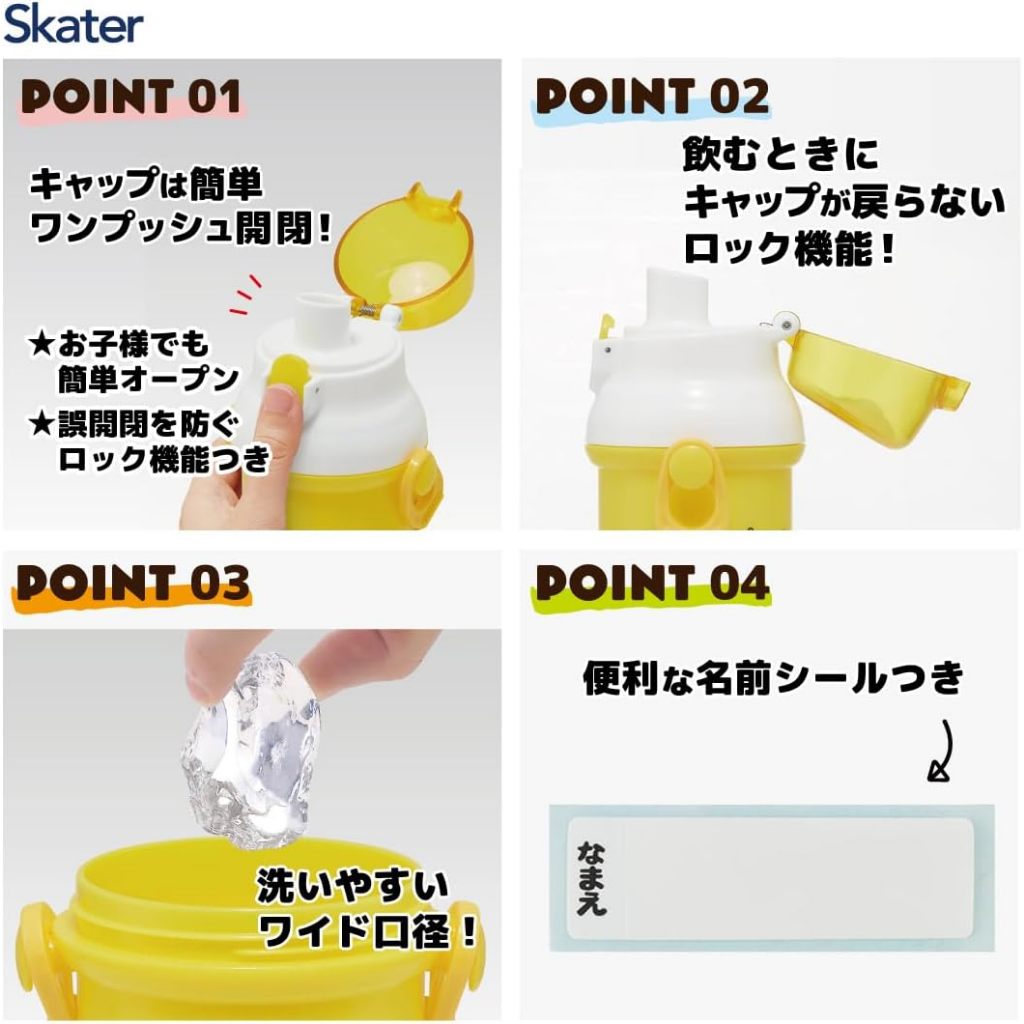 【Made in Japan】SKATER Kid Antibacterial One push direct drink plastic water bottle PSB5SANAG 480ml【Direct from Japan】