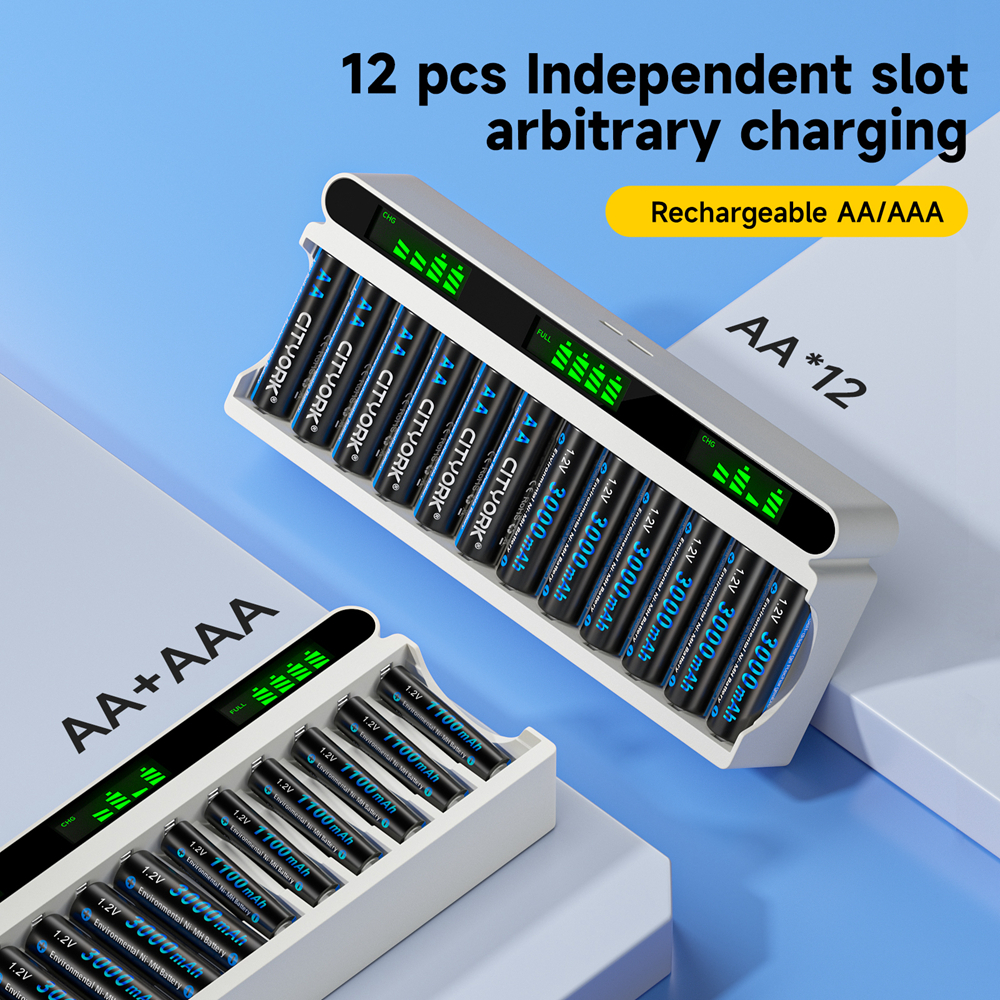 Palo 1.2v AA/AAA Rechargeable Battery 12 Slots Battery Charger pack Fast Charging LED Smart Display festivals battery