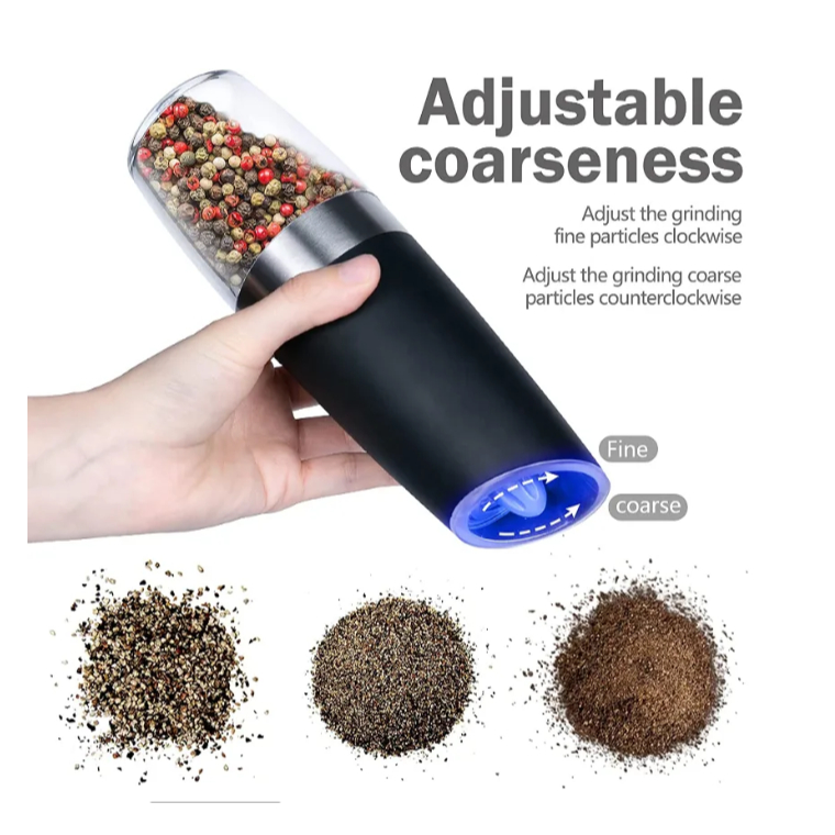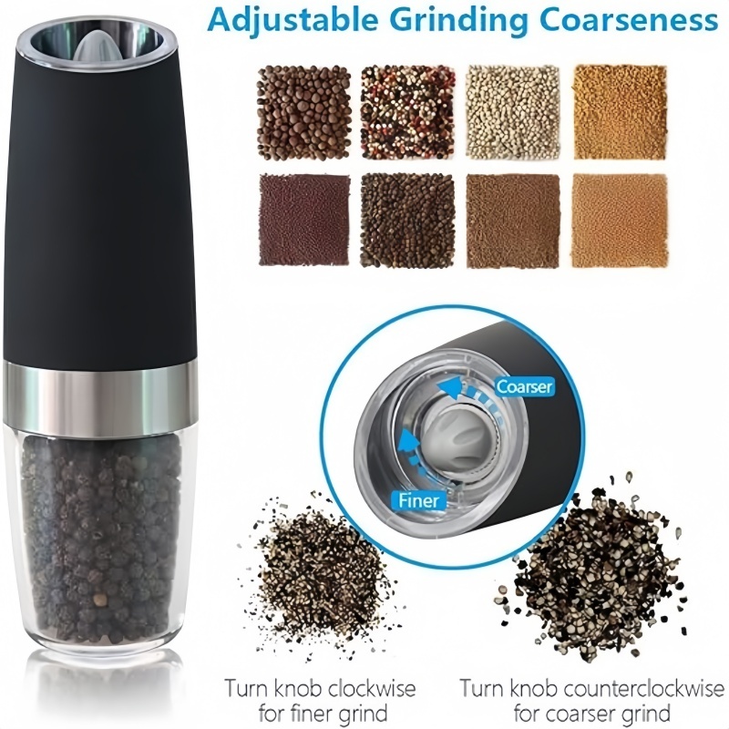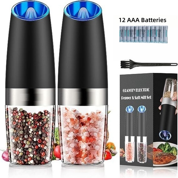 SG 2 Pack Electronic Salt and Pepper Grinder Gravity Pepper Mill Automatic Gravity Salt and Pepper Grinder