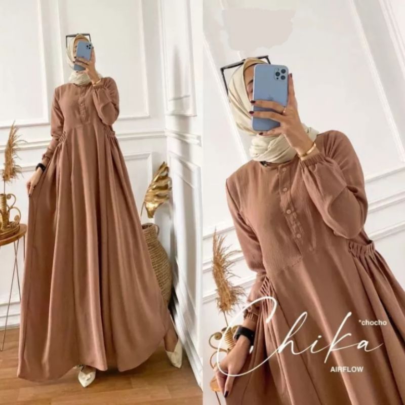Cika Maxy Dress model (Crinkle airflow) Muslim women's Gamis Eid Dress Raya Dress