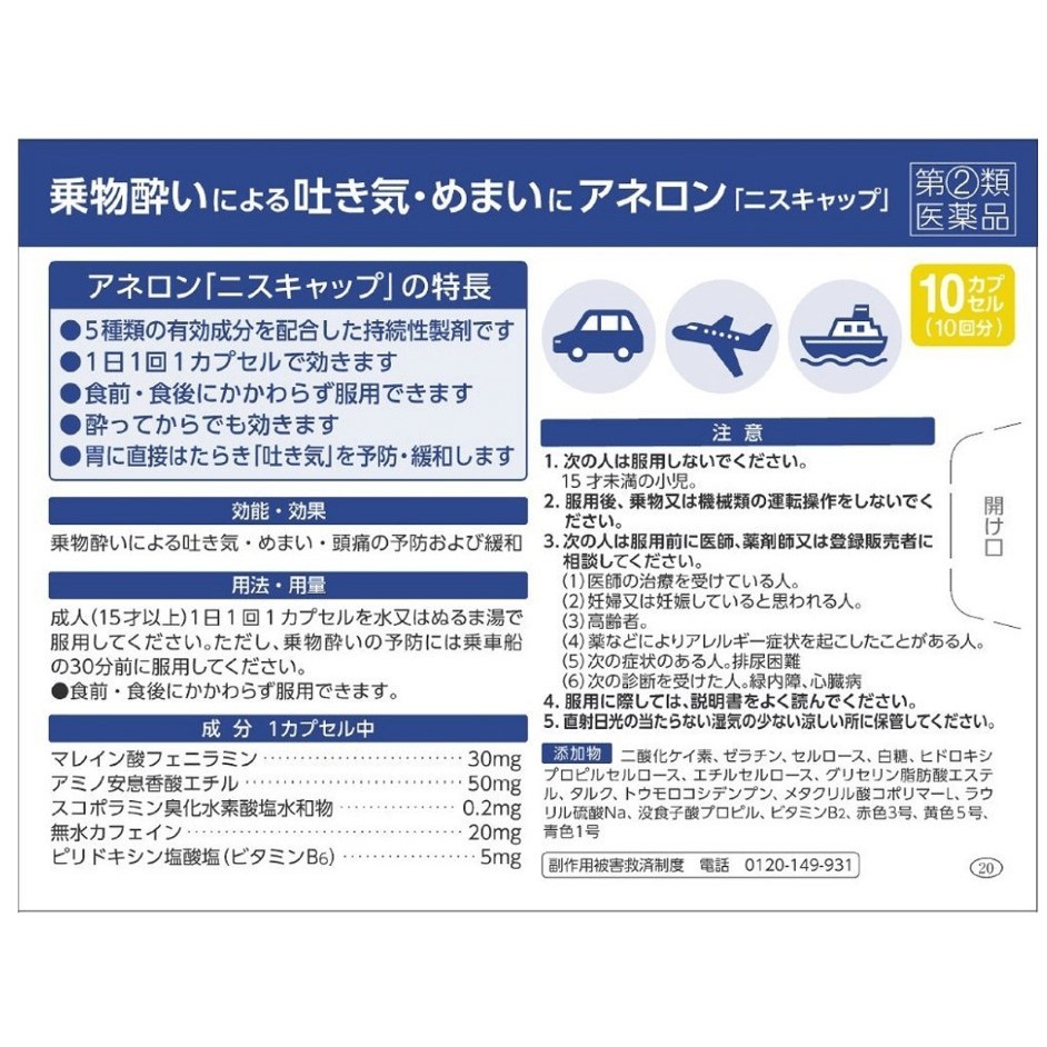 Aneron Seasick Pills (10 Capsules) Motion Sickness Fishing Japan Sea Sick Pills EXP: 2028