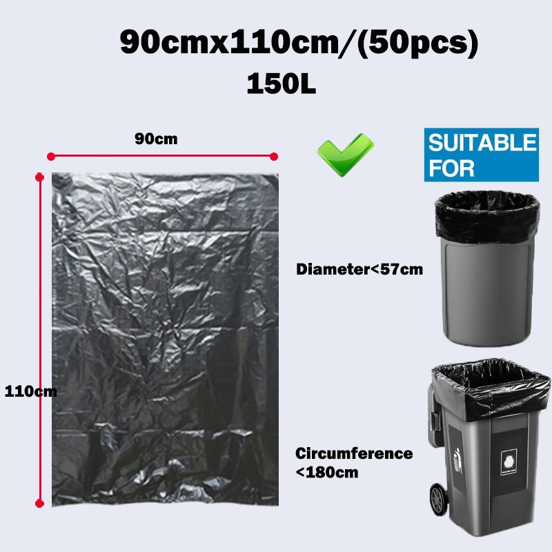 SPOETRY 50pcs Big Rubbish Bag Garbage Bag Waste Bag Trash Bag Kitchen Bag Dustbin Bag Domestic Bin Bag For Office