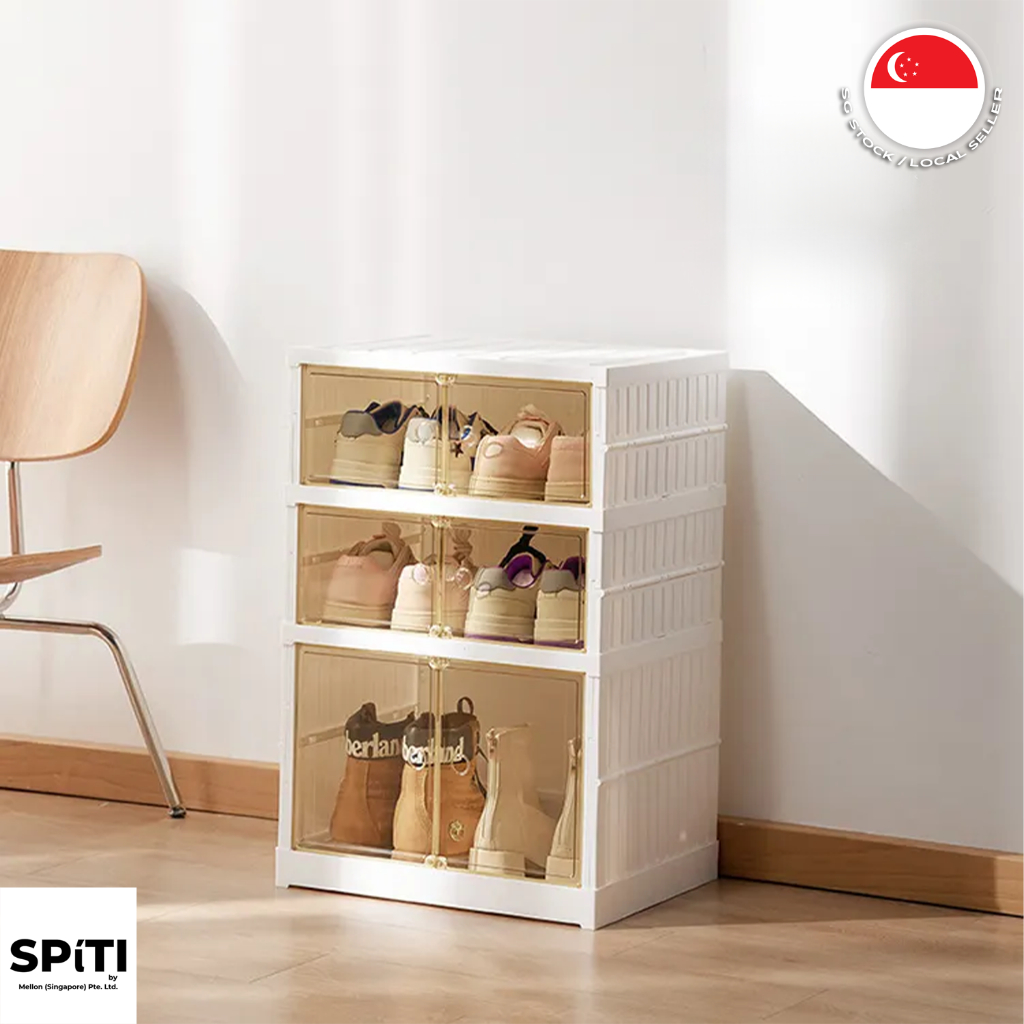 Home Modern Plastic Foldable Installation-free Portable Transparent Double-layer Shoe Rack, High Shoes Can Be placed On