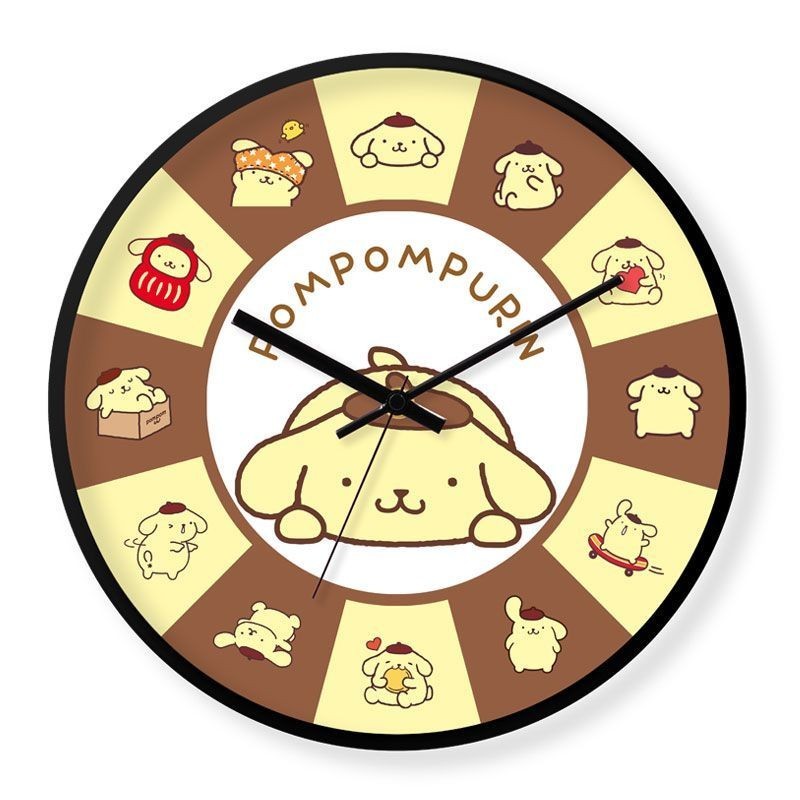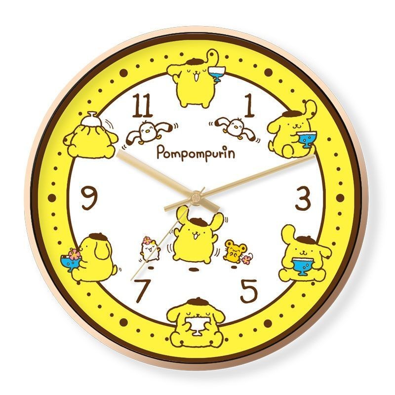 Clock Sanrio Pudding Dog Wall Clock Yellow Cute Cartoon Silent Walking Clock Home Clock Female Girl Heart Bedroom Clock