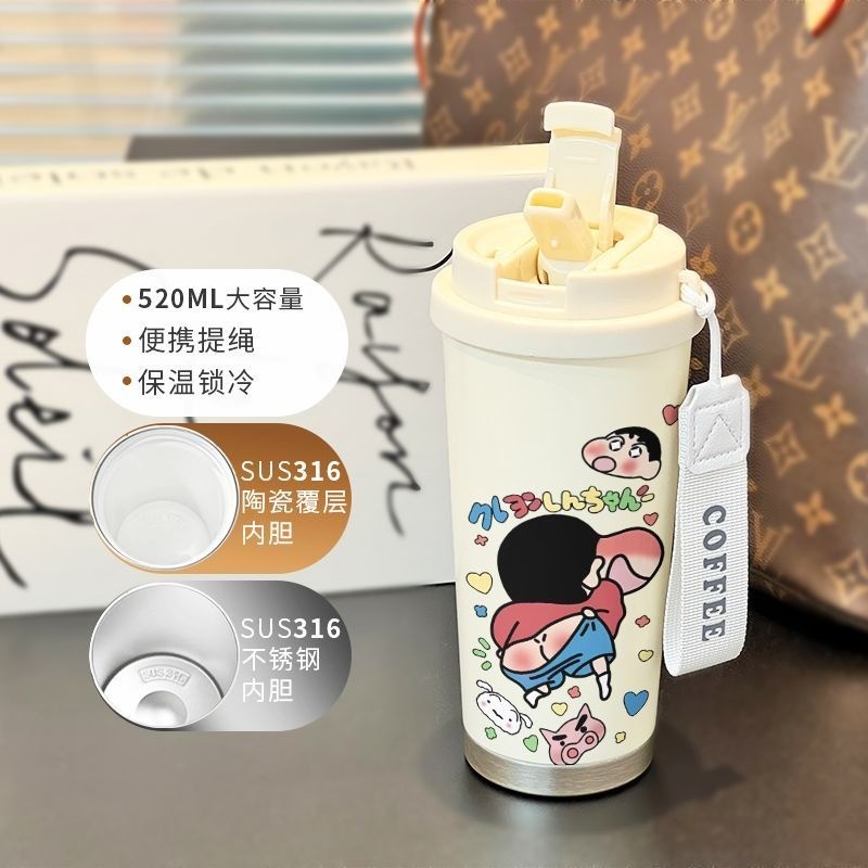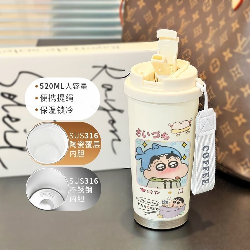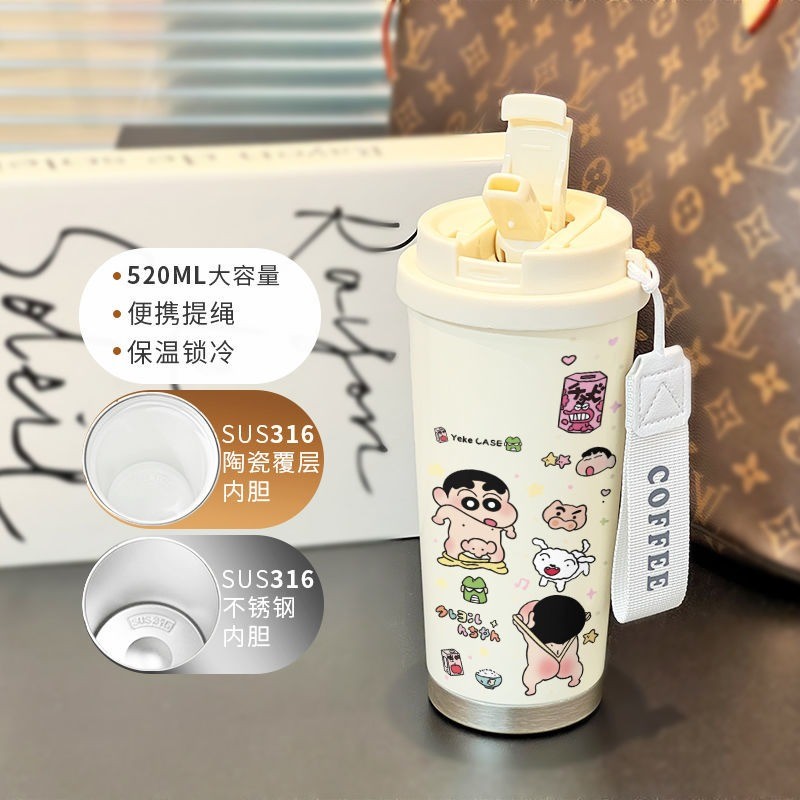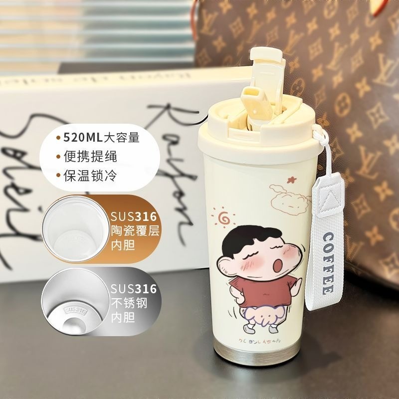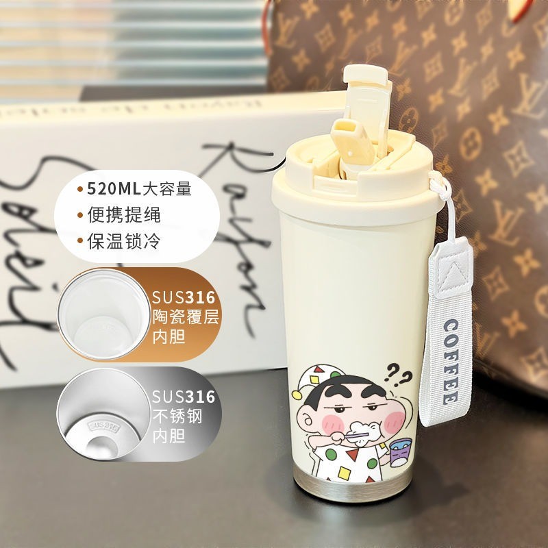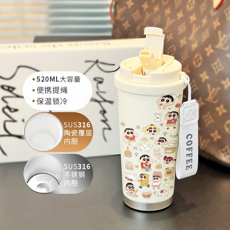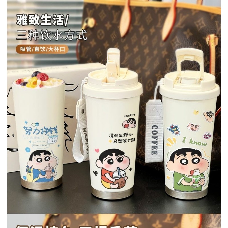 Crayon Shin-Chan Insulated Straw Water Cup Female Large-Capacity High-Value Takeaway Cup Stainless