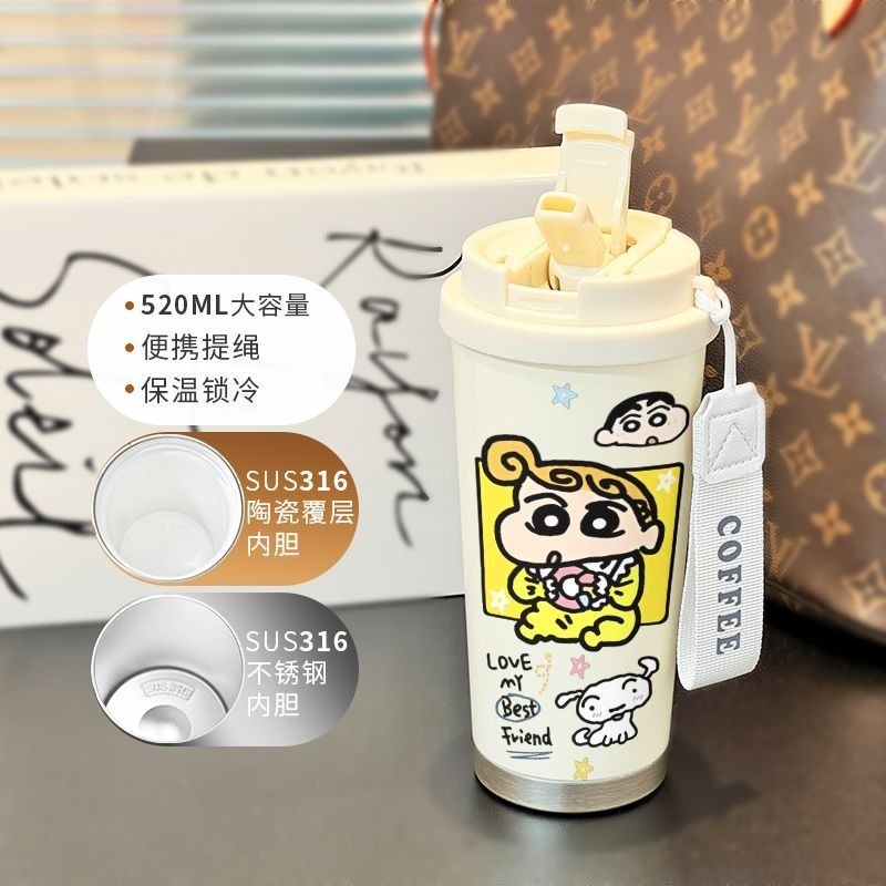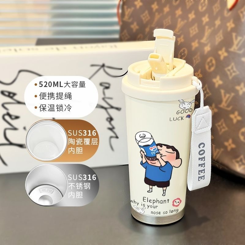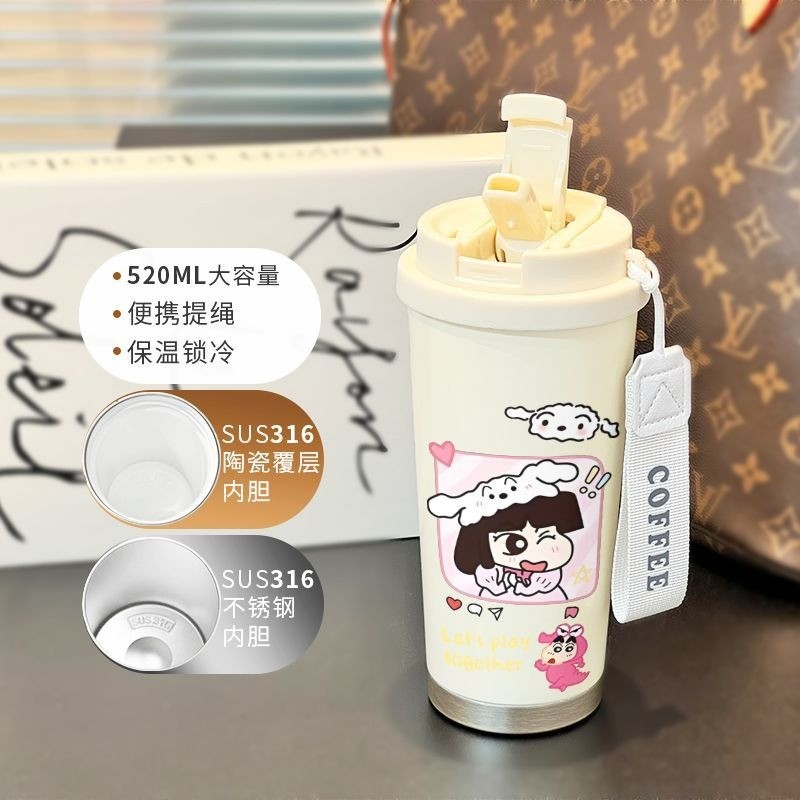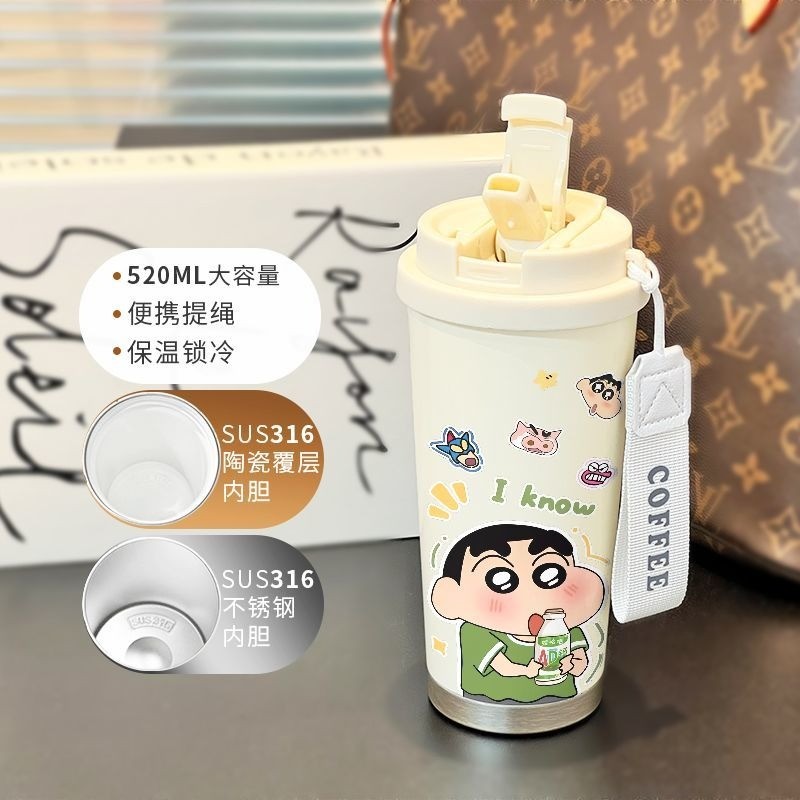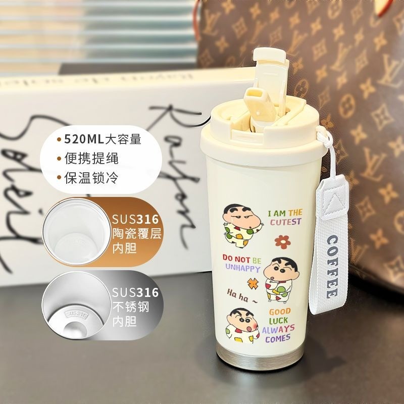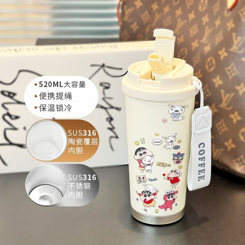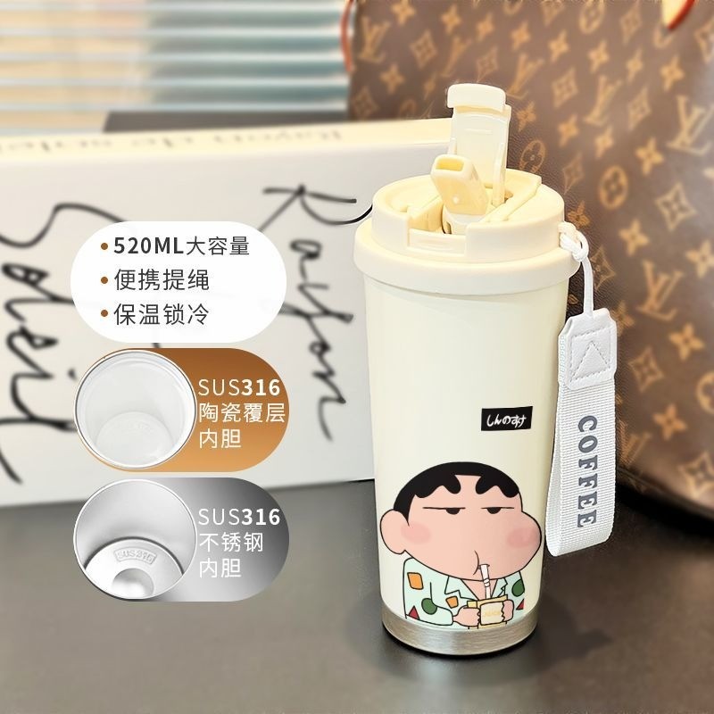 Crayon Shin-Chan Insulated Straw Water Cup Female Large-Capacity High-Value Takeaway Cup Stainless