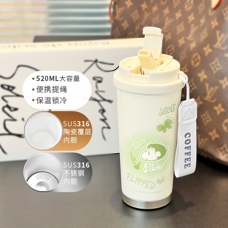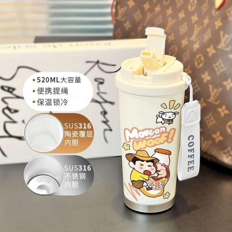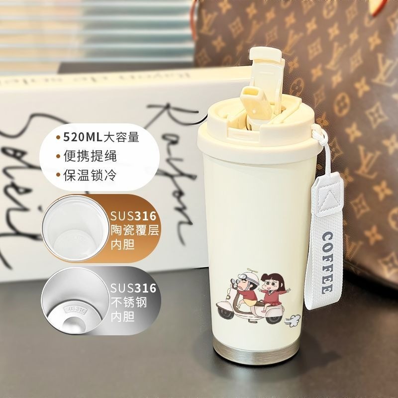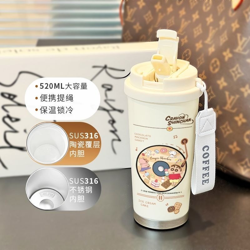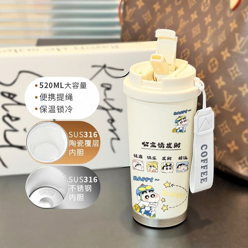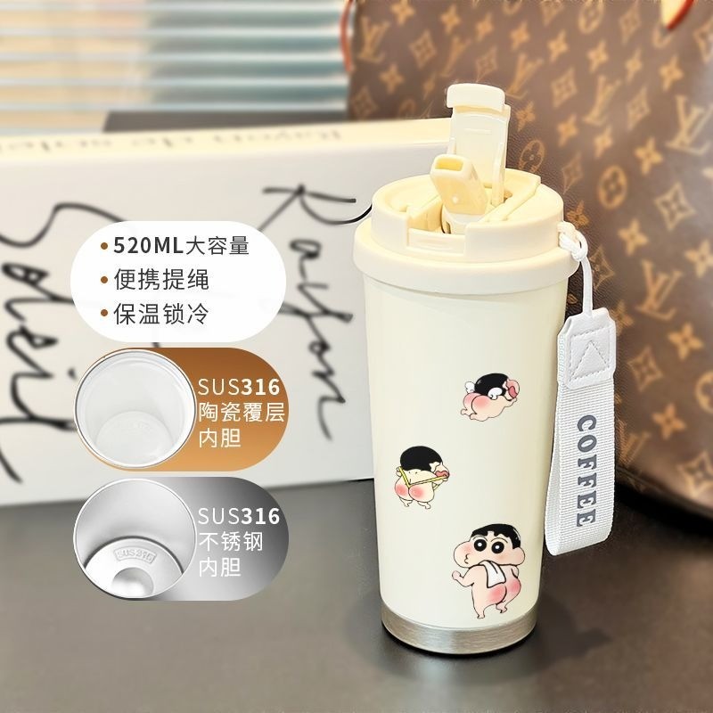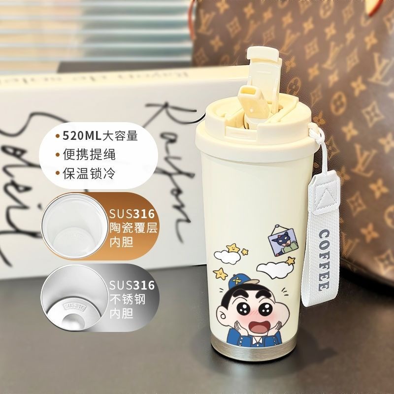 Crayon Shin-Chan Insulated Straw Water Cup Female Large-Capacity High-Value Takeaway Cup Stainless