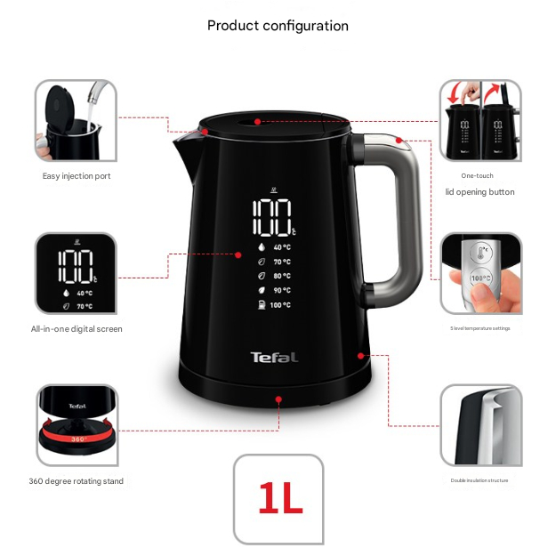 Tefal Digital Display Wireless Kettle 1L KO8528KR StainlessSteel TemperatureControl PerfectBrew