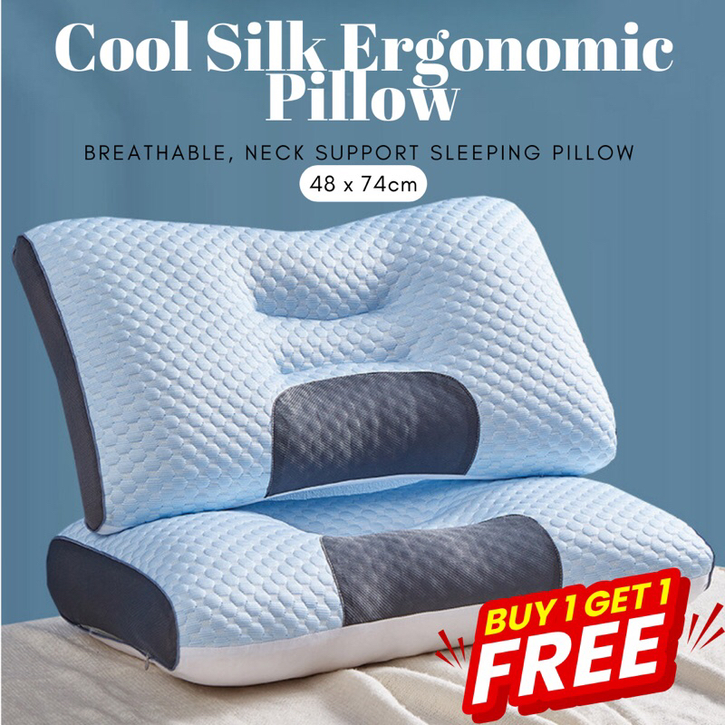 Cool Silk Honeycomb Pillow Ergonomic Breathable Neck Support Sleeping Pillow 48x74cm