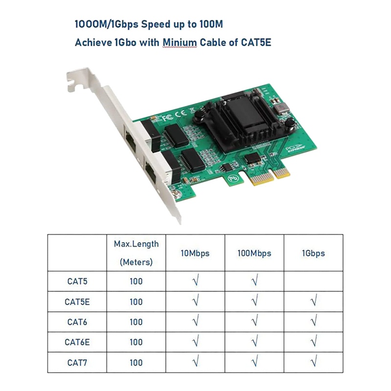 2-Port Gigabit PCIe Network Card 1000M Dual Ports PCI Express Ethernet Adapter with 82571EB LAN NIC Card for Windows