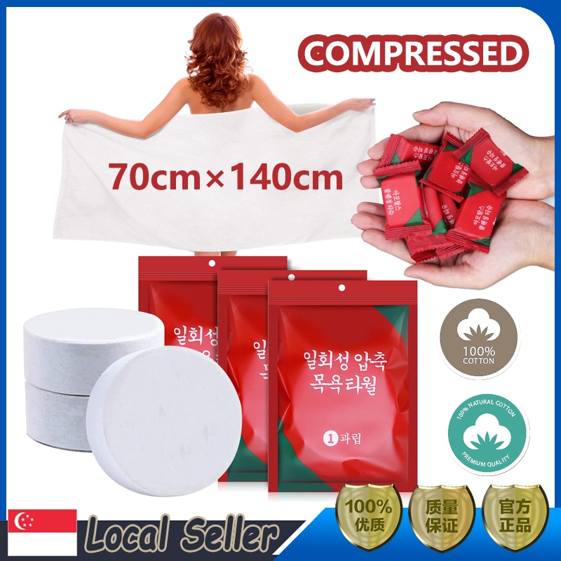 [SG Seller] Disposable Compressed Bath Towel Face Towel Travel Portable Hotel 压缩浴巾 压缩毛巾 Cotton Thickened Soft Big Bath Towels Water Absorption Strong Convenient Travel Supplies 70 x 140cm 一次性纯棉浴巾