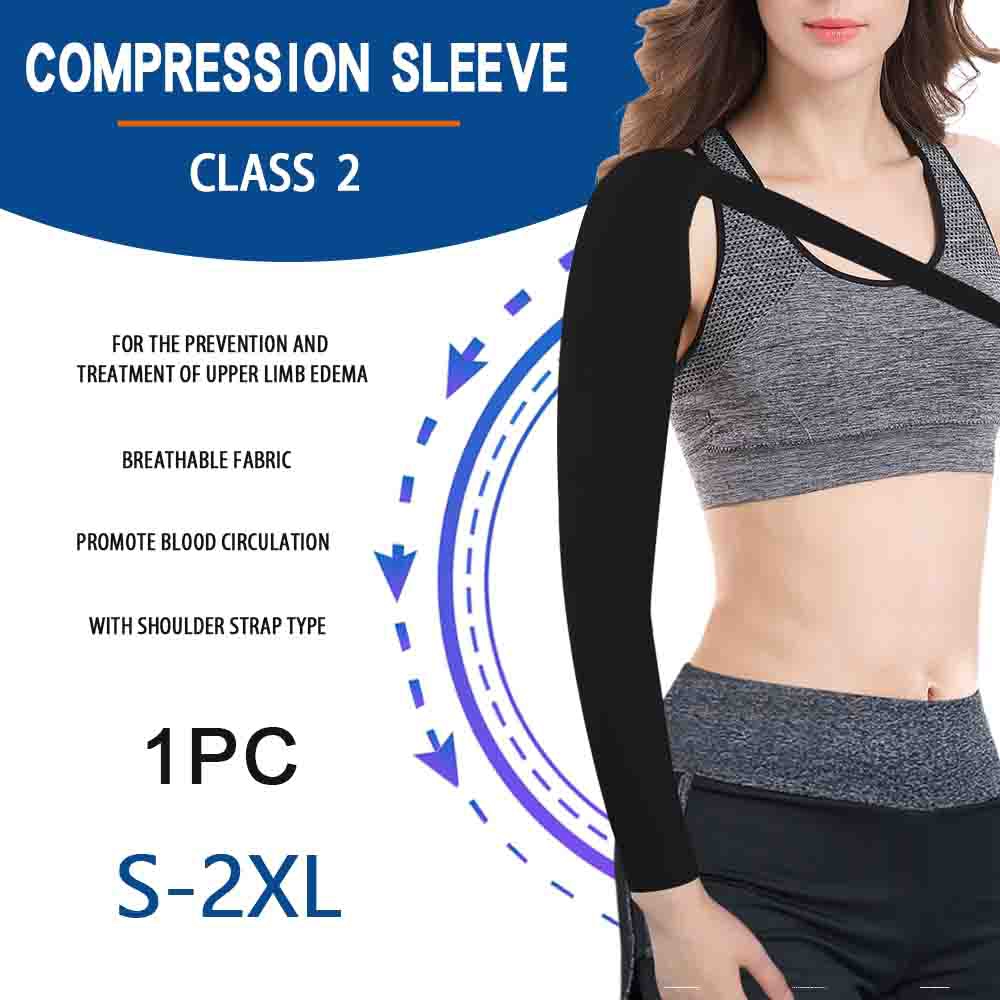1pc Medical Compression Arm Sleeve with Shoulder Strap for Anti-Swelling Pain Relief Men and Women Breathable Arm Elbow Sleeve