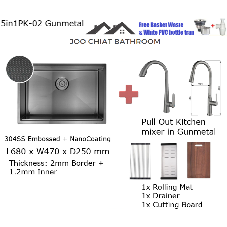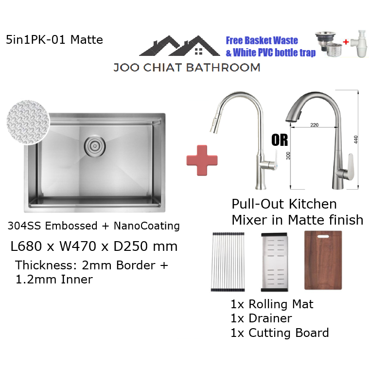 Embossed Nano Coating Stainless steel 304 Kitchen sink Cutting board Rolling Mat Drainer Pull Out Kitchen mixer