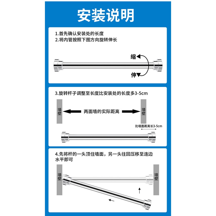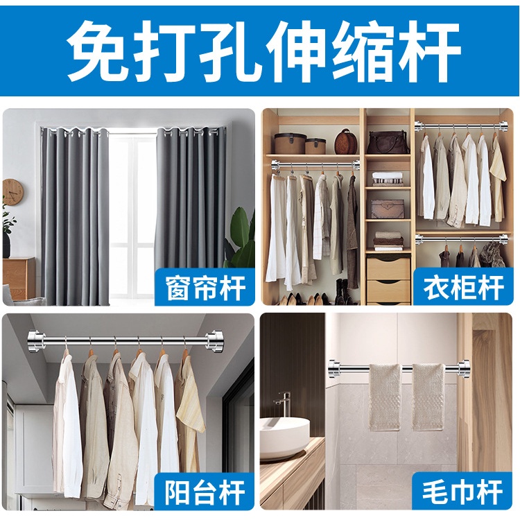 Super Long 150-260cm Premium Curtain Rod Pole Laundry Shower Bathroom Stainless Steel Extendable Telescopic