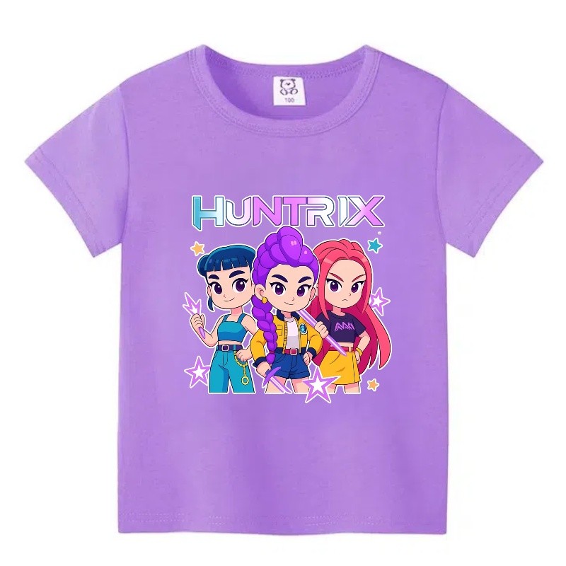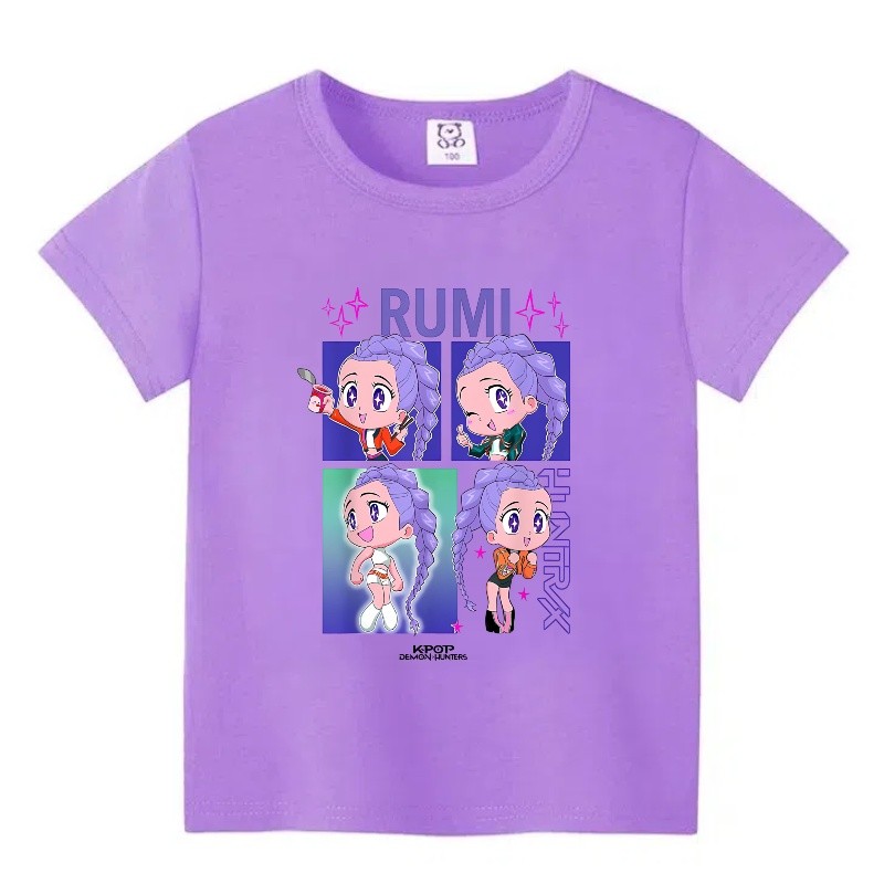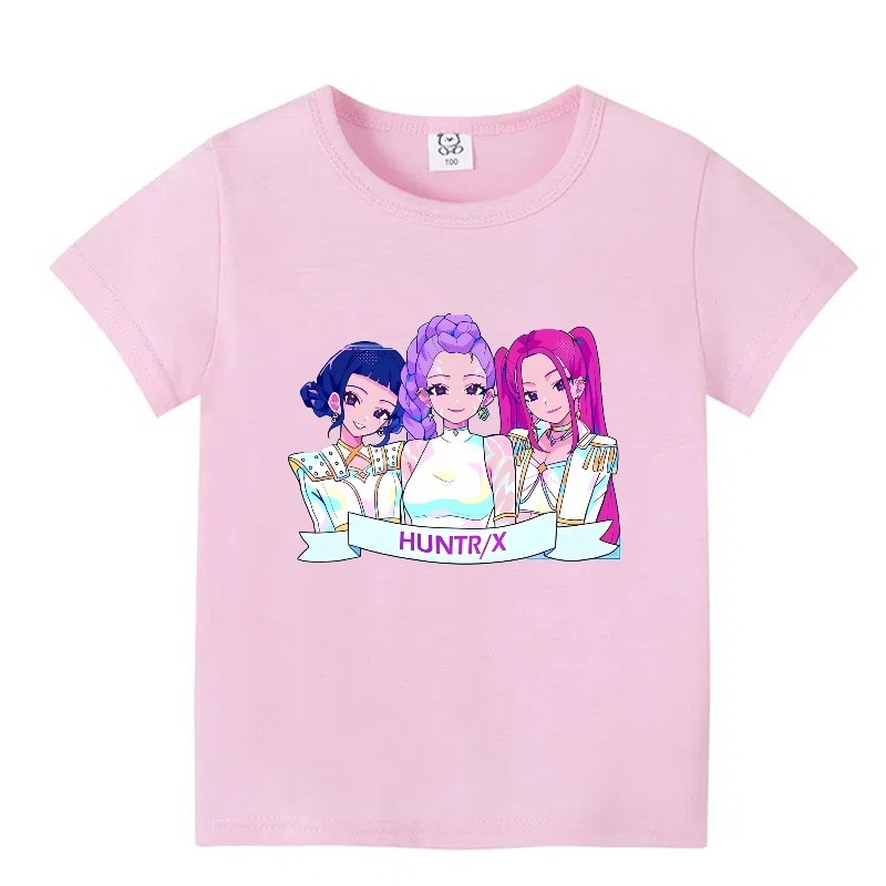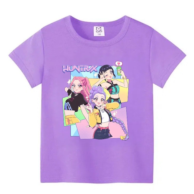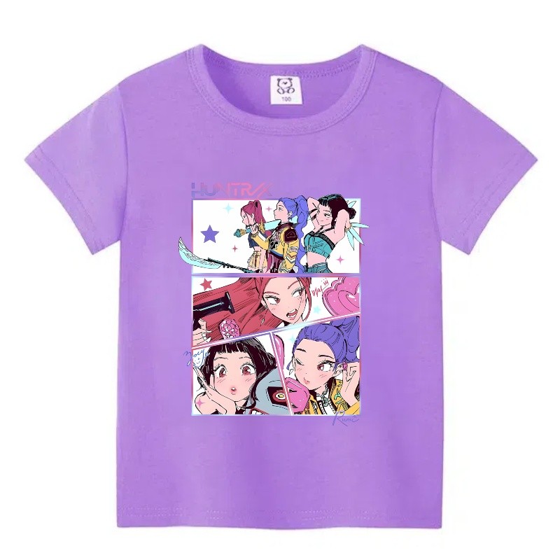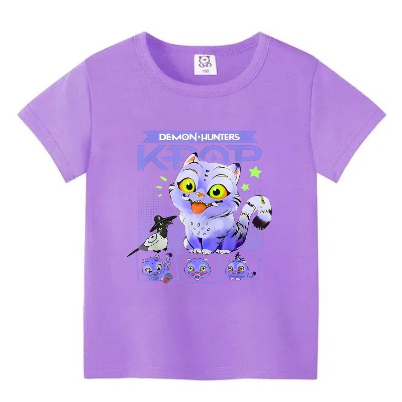KPop Demon Hunter T-shirt Cartoon cotton children's T-shirt color casual top fashionable short sleeved versatile clothing