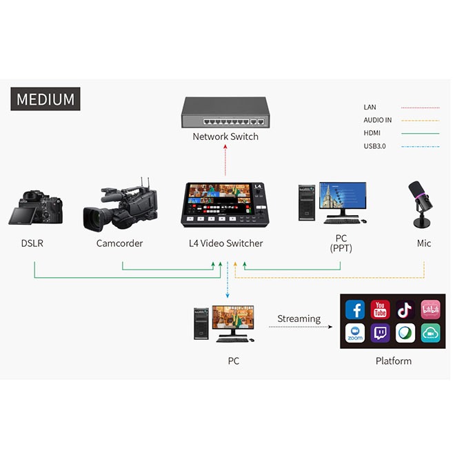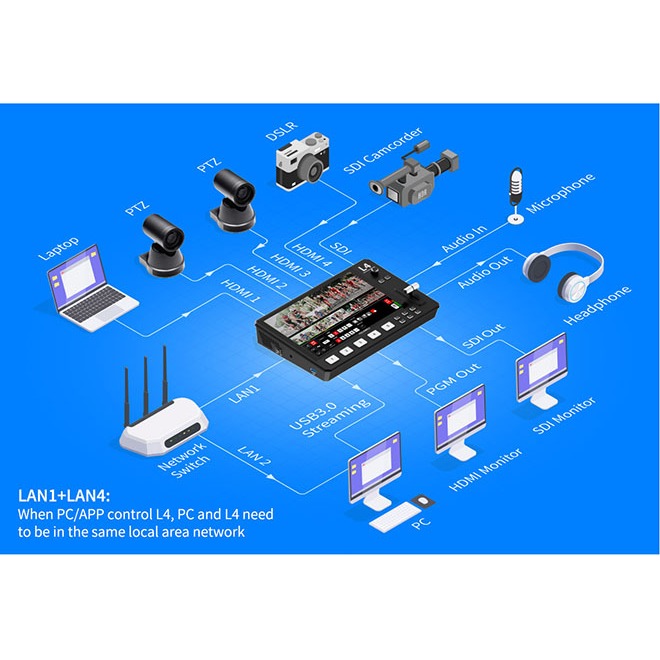 FEELWORLD L4 Multi camera Video Hybrid Switch 10.1-inch Touch Screen USB3.0 Fast Streaming