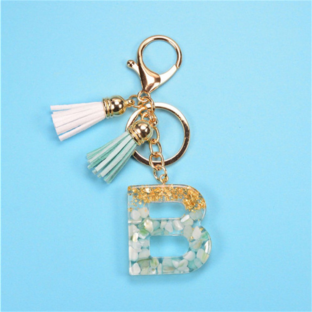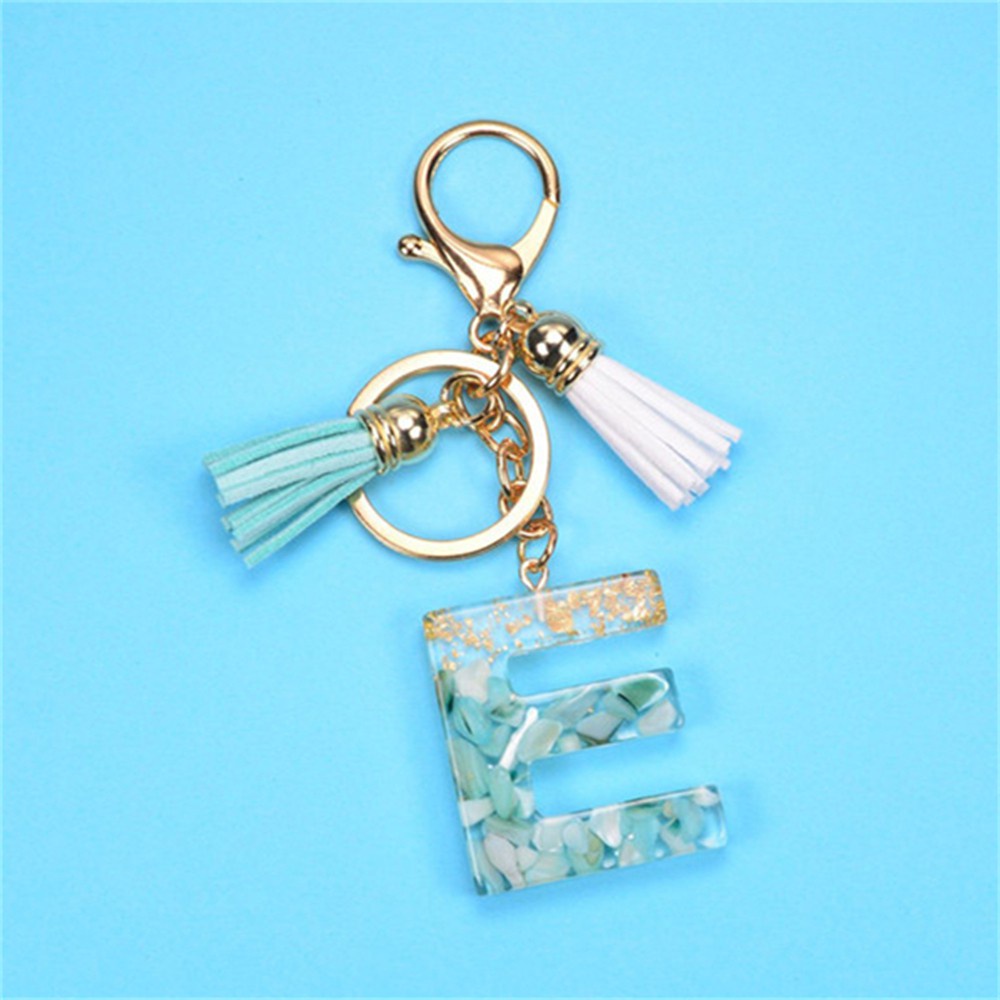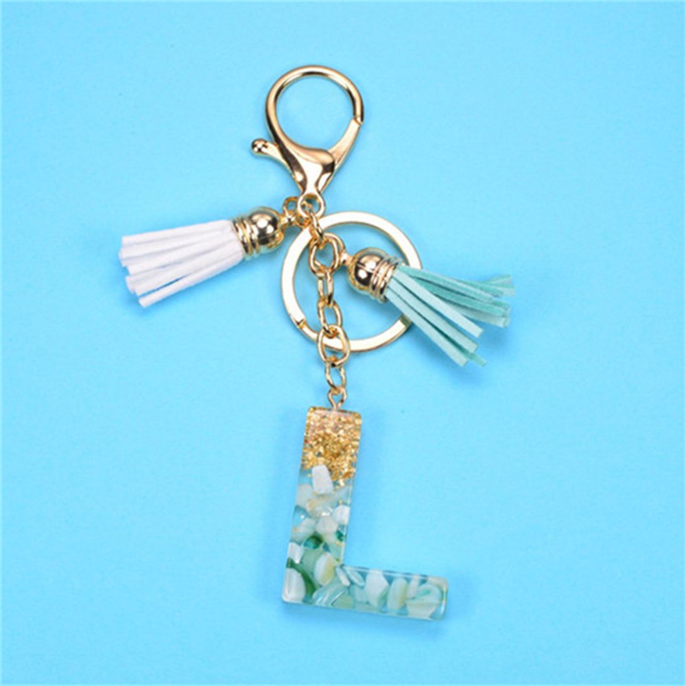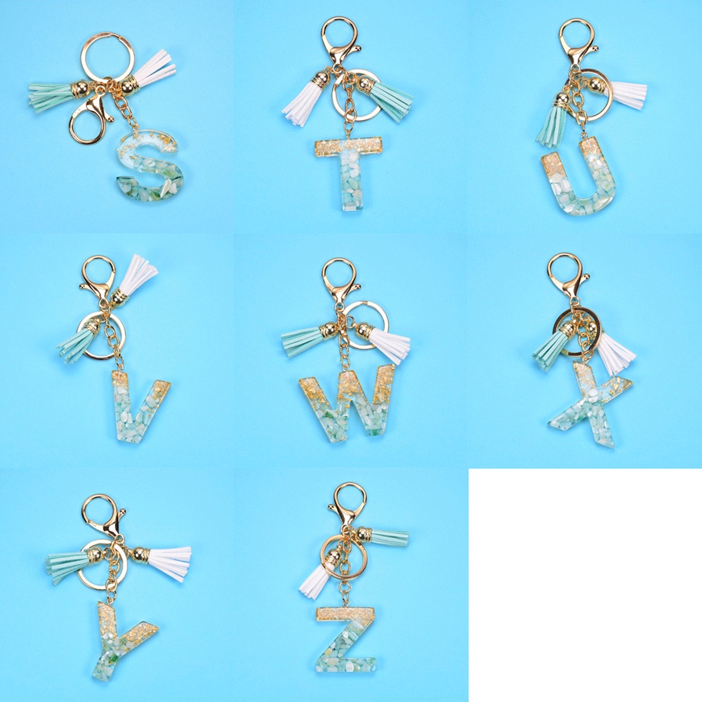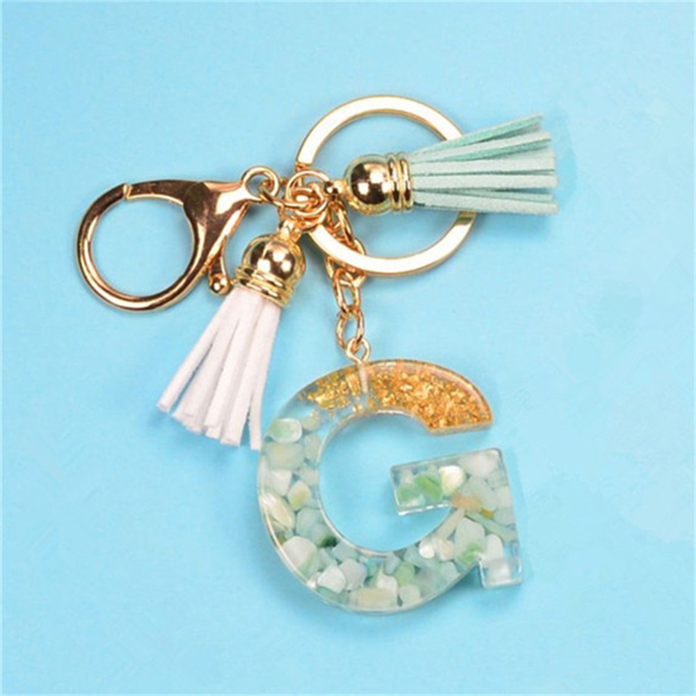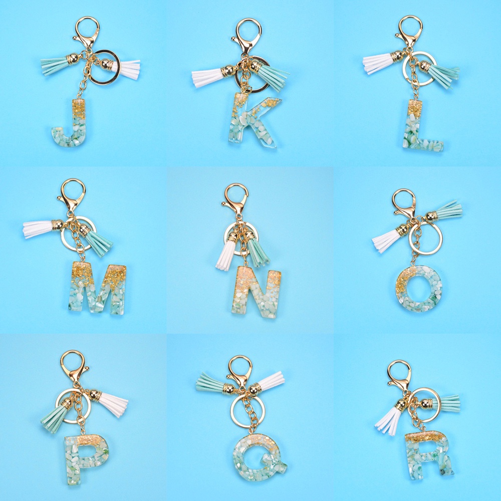 Creative 26 Letter Resin Keychains Charms With White Green Tassel Car Key Ring Pendant Bag Ornaments Accessories Birthday Gifts
