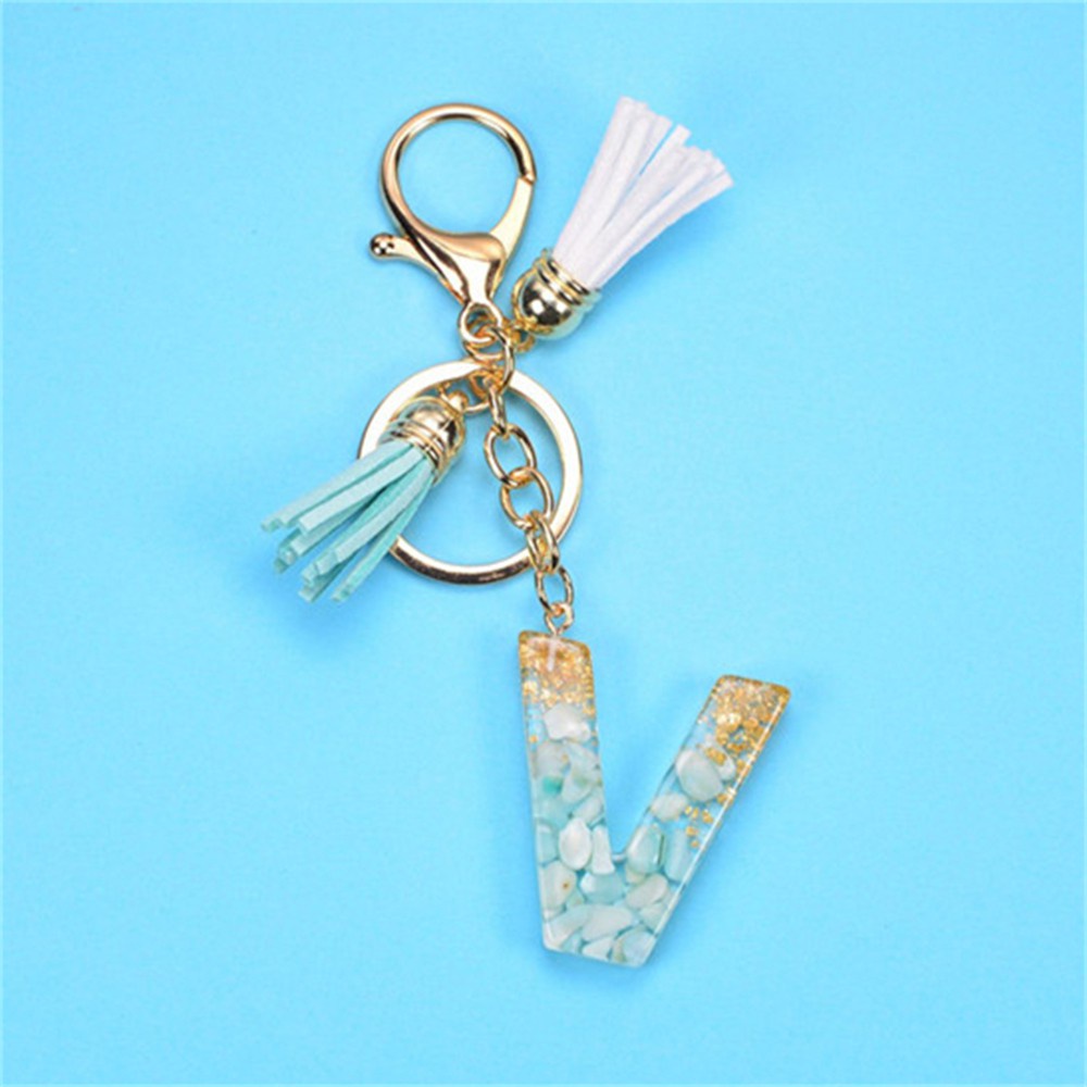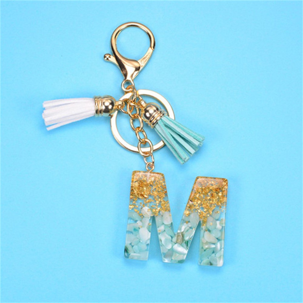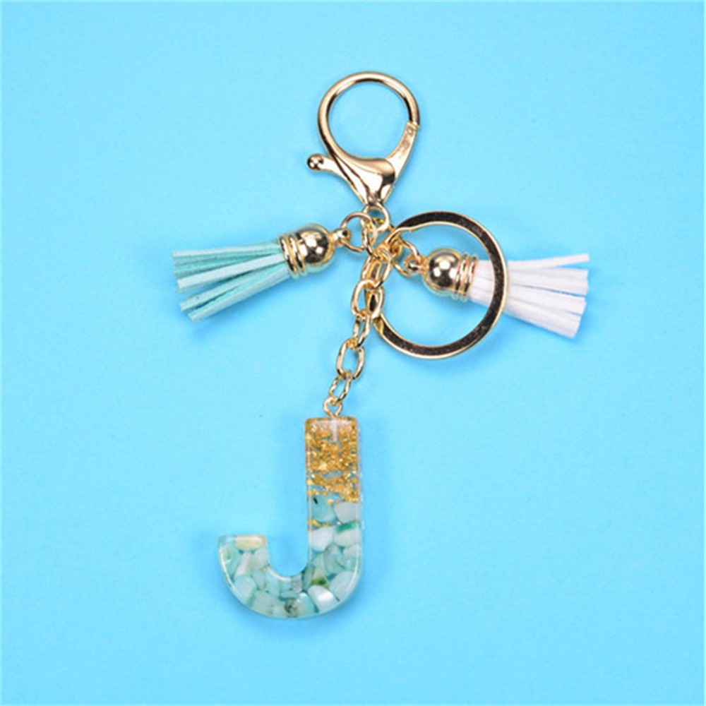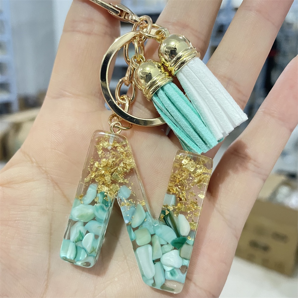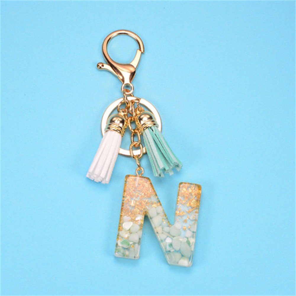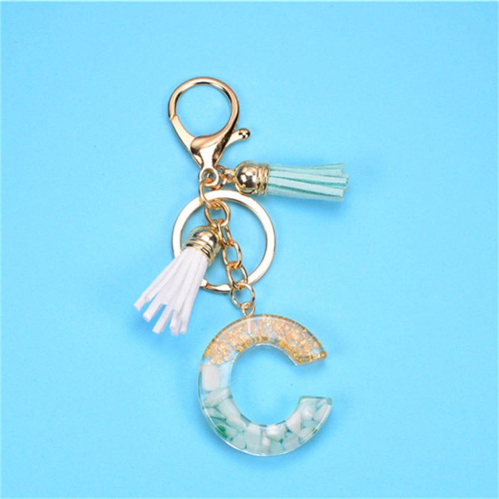 Creative 26 Letter Resin Keychains Charms With White Green Tassel Car Key Ring Pendant Bag Ornaments Accessories Birthday Gifts