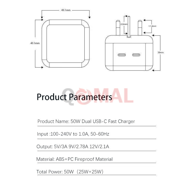50W Dual Ports USB C Fast Charger