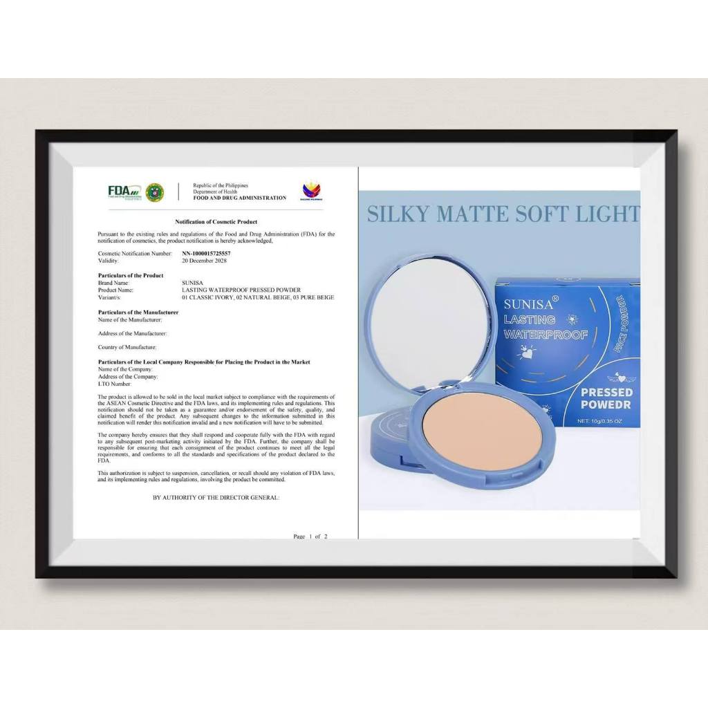 SUNISA Lasting Waterproof Face Powder 10g Oil Control Matte Flawless (New)
