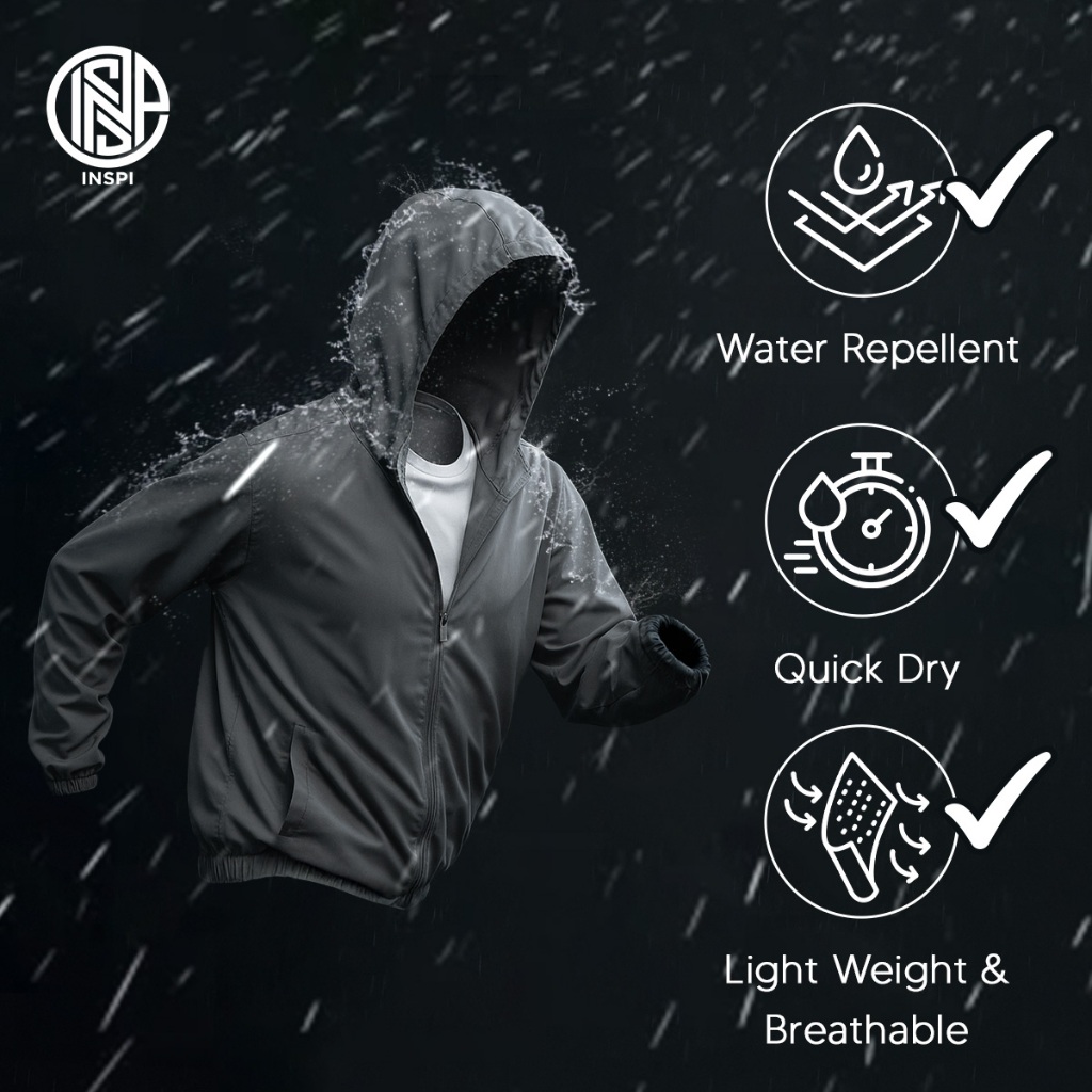 INSPI Windbreaker Bomber Jacket for Men Women with Zipper and Pockets Quick Dry Hoodie Collection