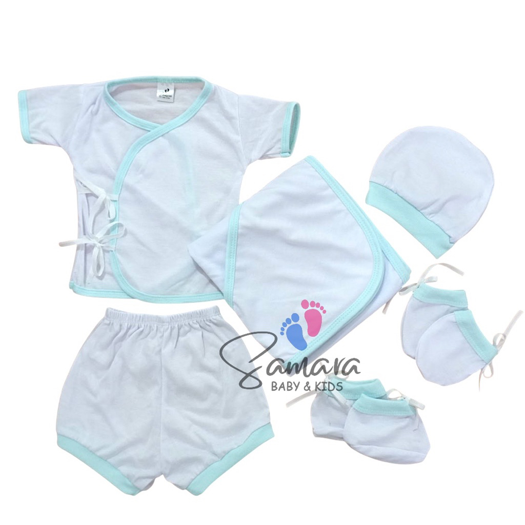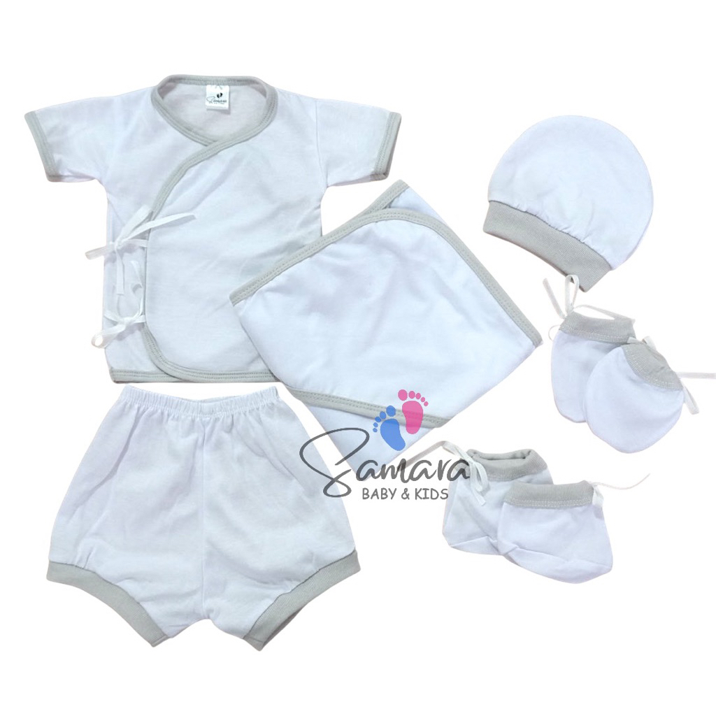 Samara 6-in-1 Lining Newborn Essentials Set | 100% Cotton | Towel/Bonnet/Mittens/Booties/Top/Short