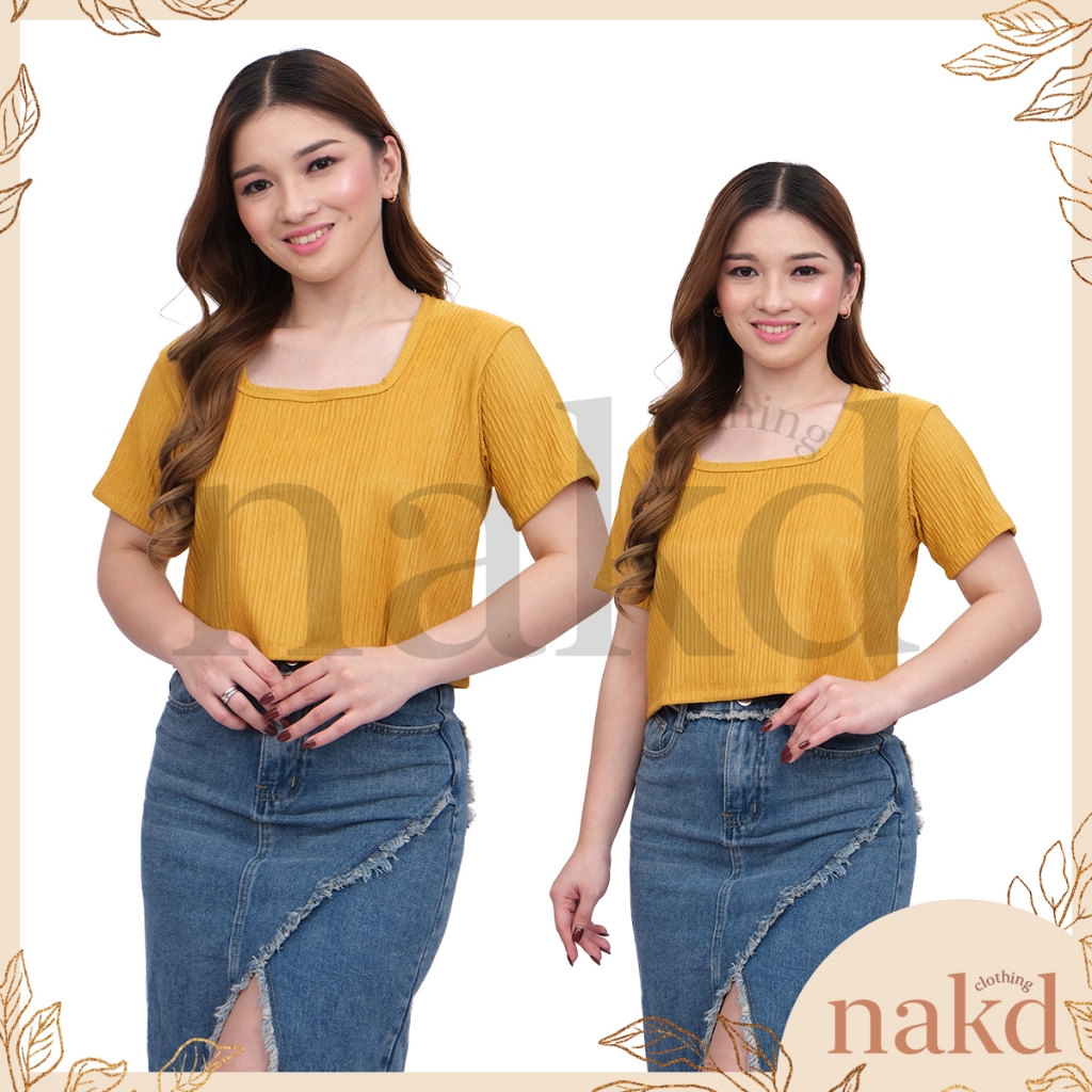NAKD FASHION GINEVRA BASIC SQUARE NECK BARK CREPE DAILY CASUAL BLOUSE TOP FOR WOMEN 1824