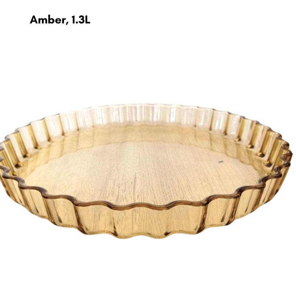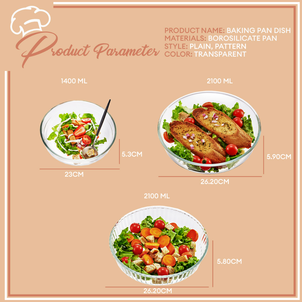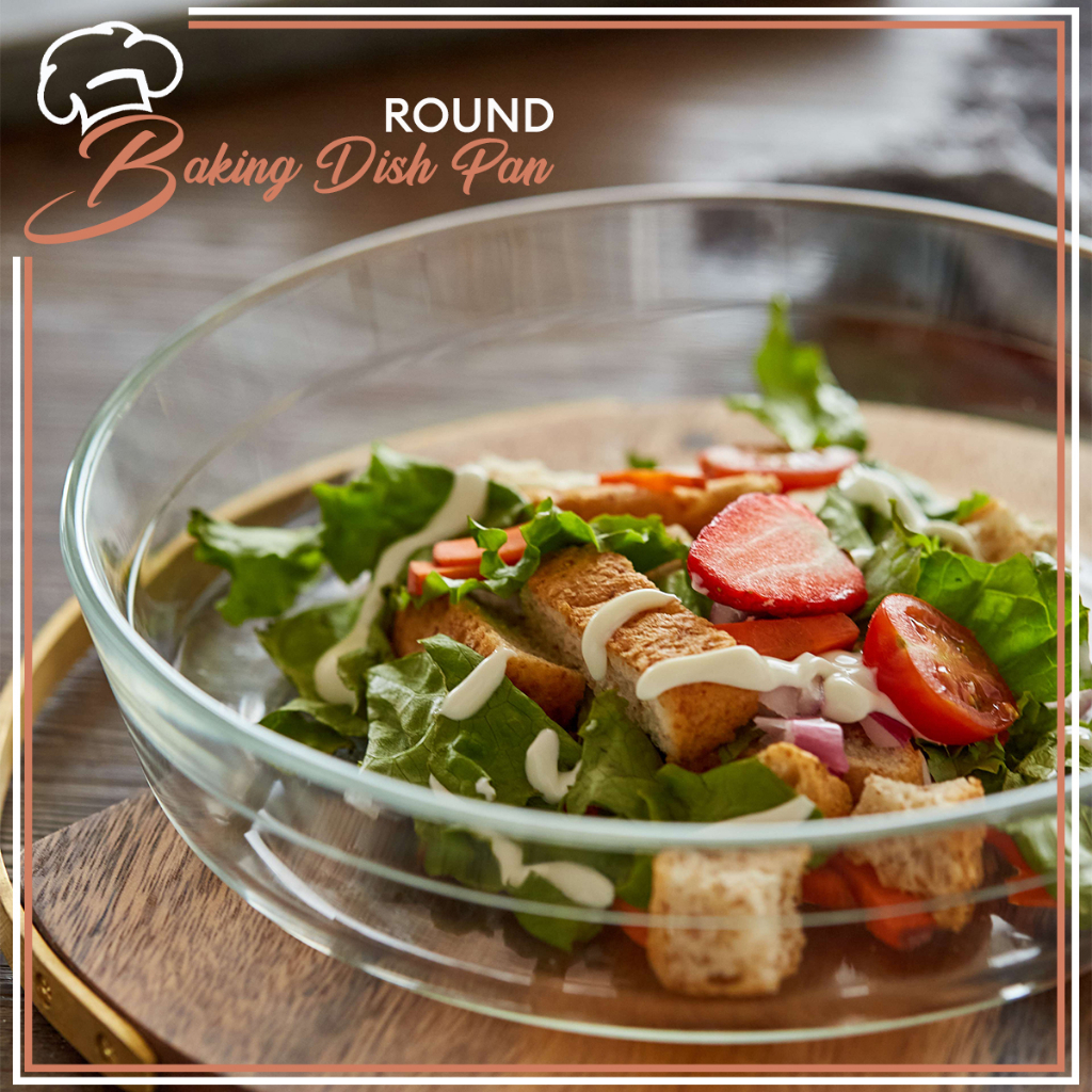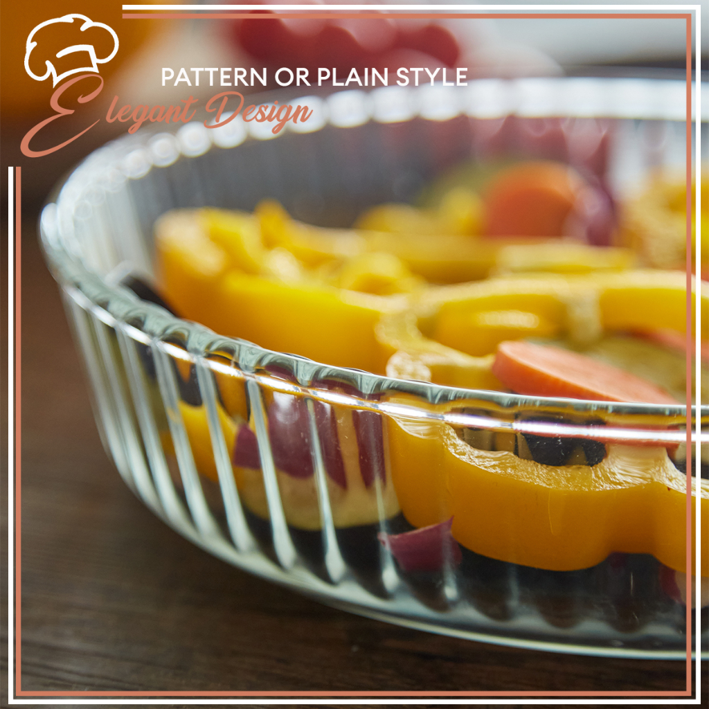 LOCAUPIN Round Glass Baking Plate Prosperity Bowl Dessert Dish Pan Microwave Oven Safe Glass Plate