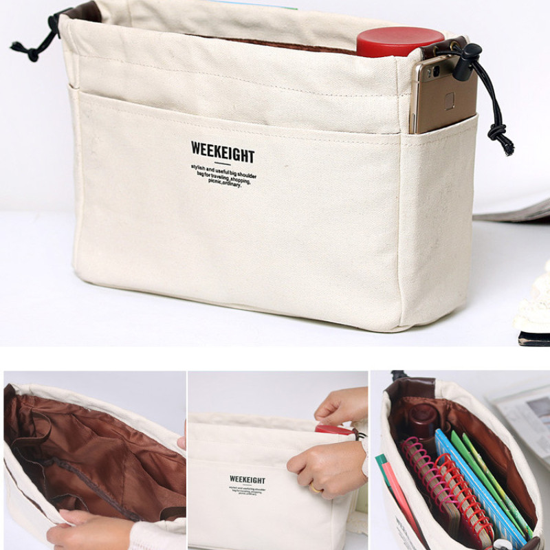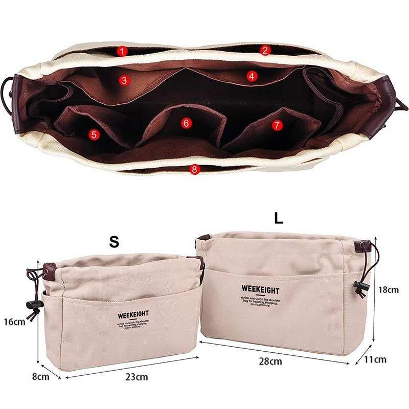 Canvas Storage Multi-Pockets Divider Drawstring Liner Bag Lightweight Portable Travel Storage Bag Bag Organiser Insert