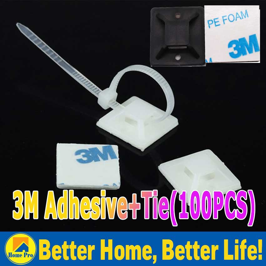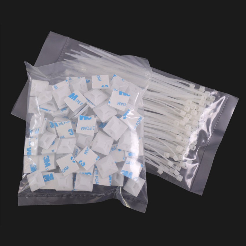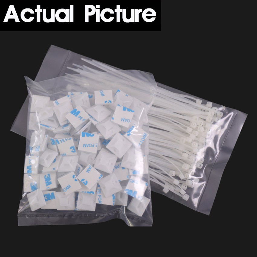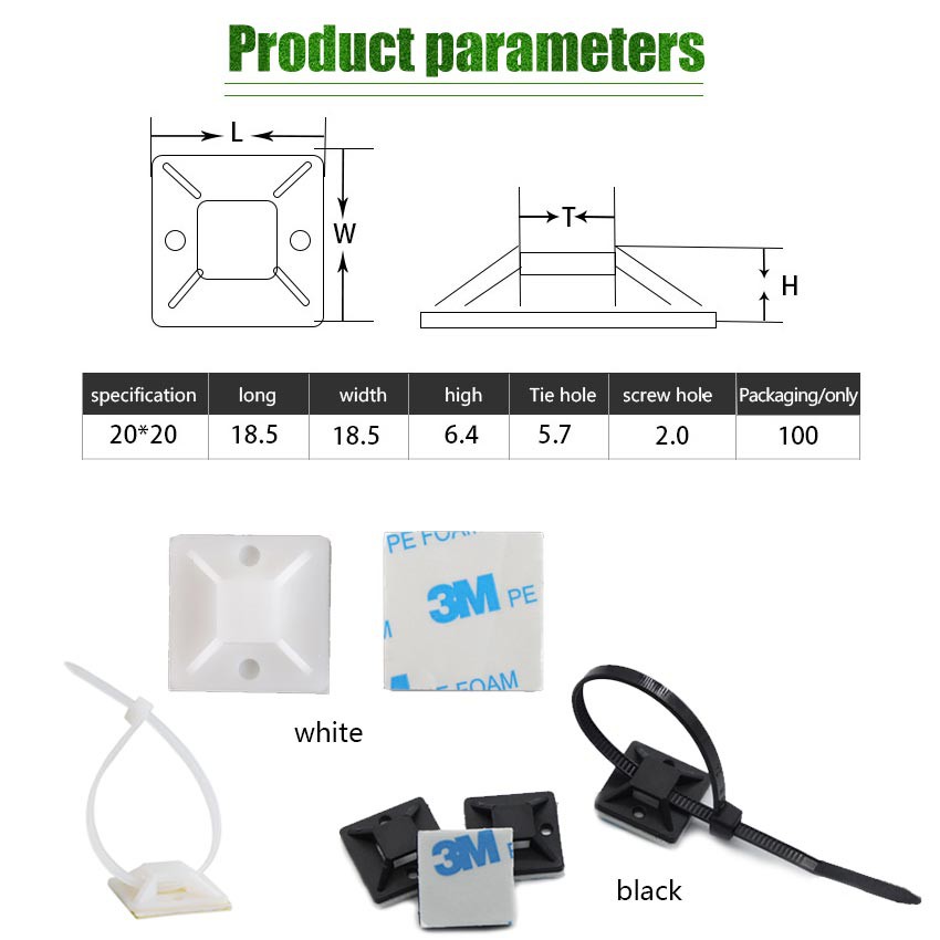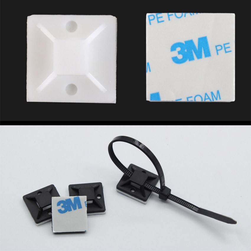 100PCs Cable Tie Mount Wire Buddle Saddle Type Self-Adhesive Plastic Holder White Black