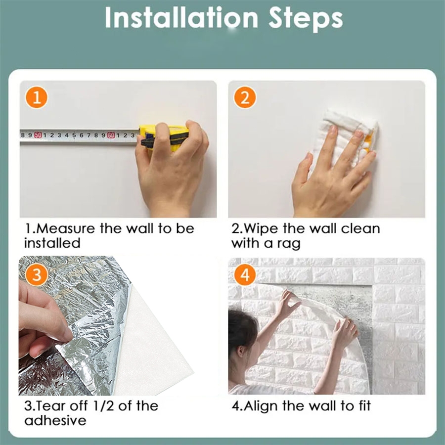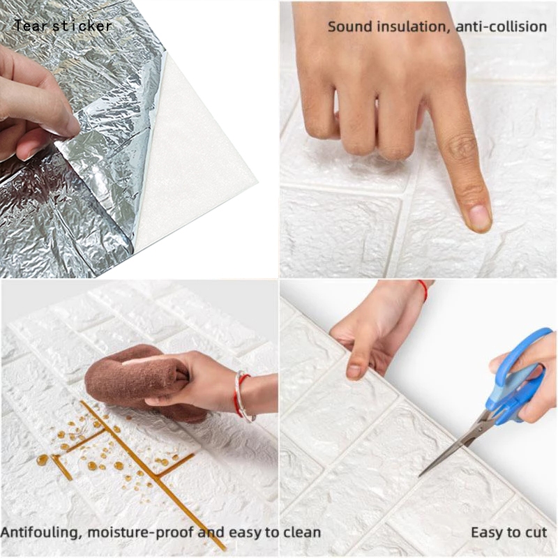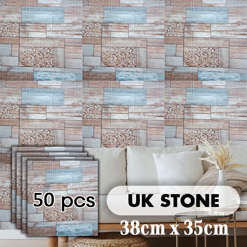 50PCS 38x35cm 3D Foam Brick Wallpaper Self Adhesive Textured Wall Covering for Household