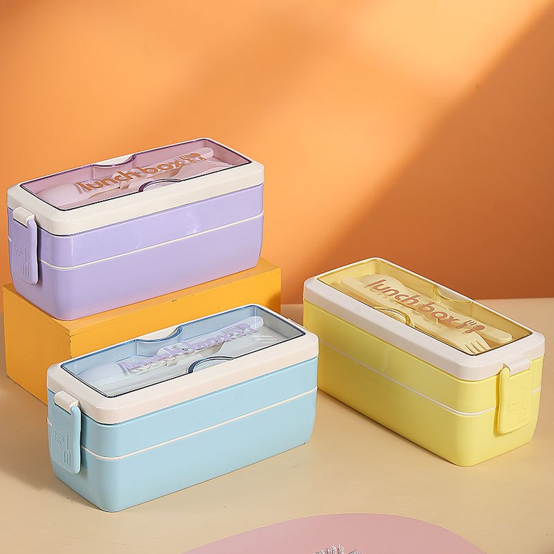 750ml 2-layer lunch box for work special student plastic microwave oven with rice and fat-reducin