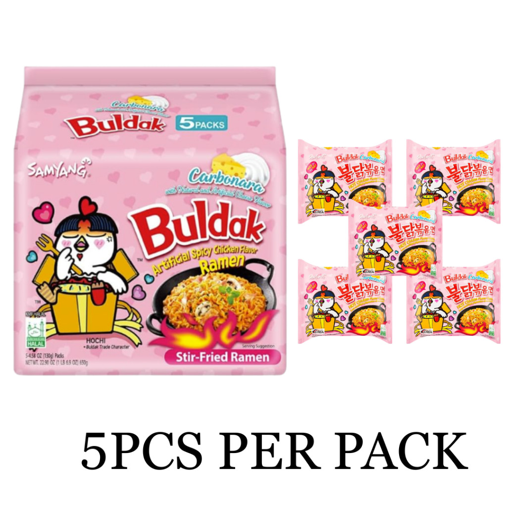 korean noodles Buldak Noodles Carbonara & Cheese Halal Multipack 5 Packs | Korean Noodle Bulk Pack samyang buldak noodles