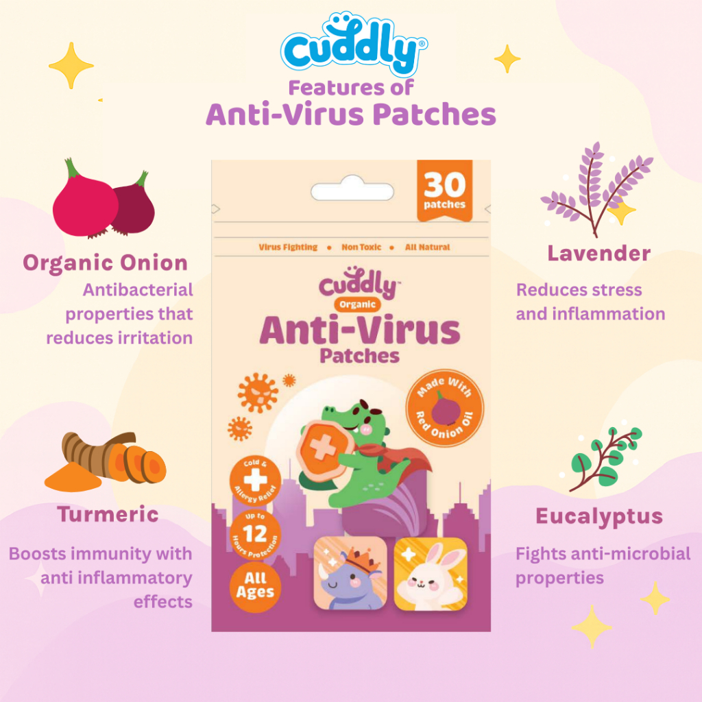 Cuddly Anti-Virus Red Onion Patches (30pcs) for Kids & Adults, Natural Immunity, Drug Free