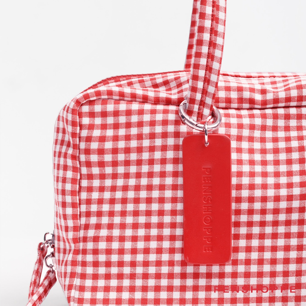 Penshoppe Gingham Bowler Bag with Leather Charm Branding (Red)