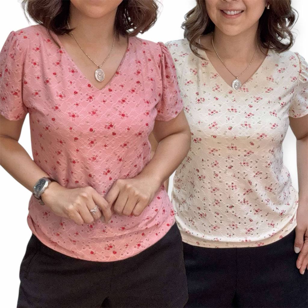 Tagless,ph MARDI V-neck Puff Sleeves Printed Blouse