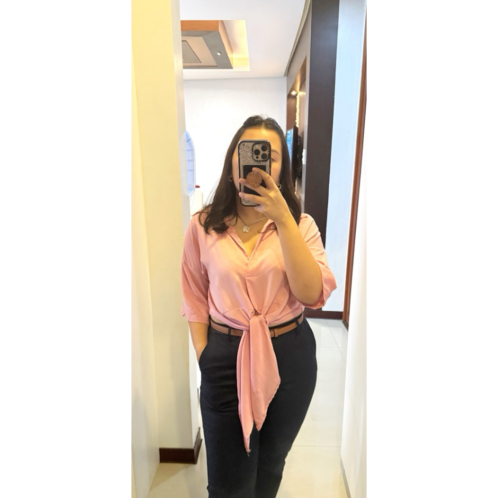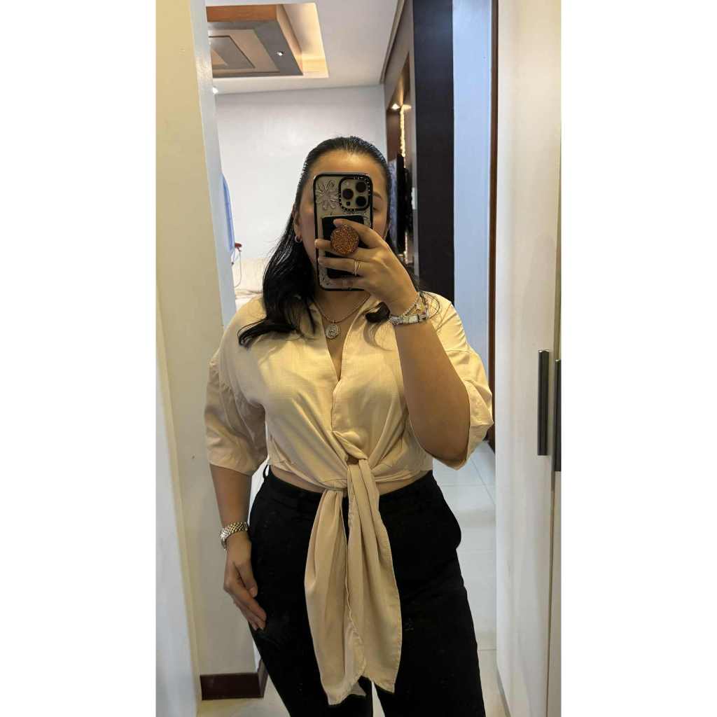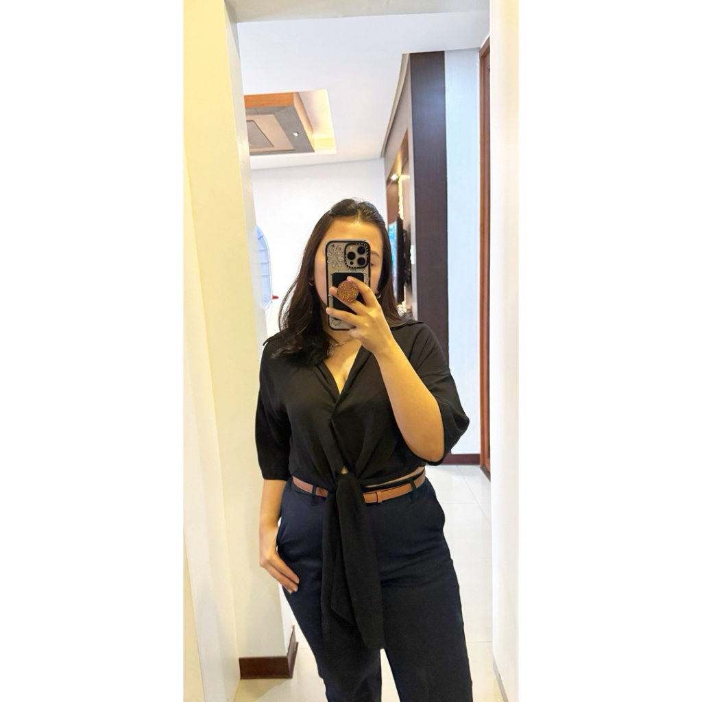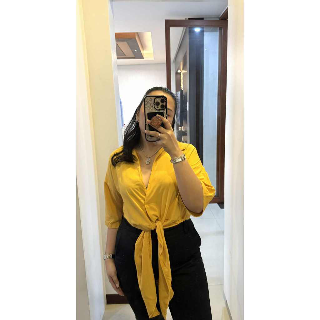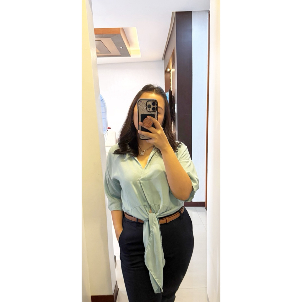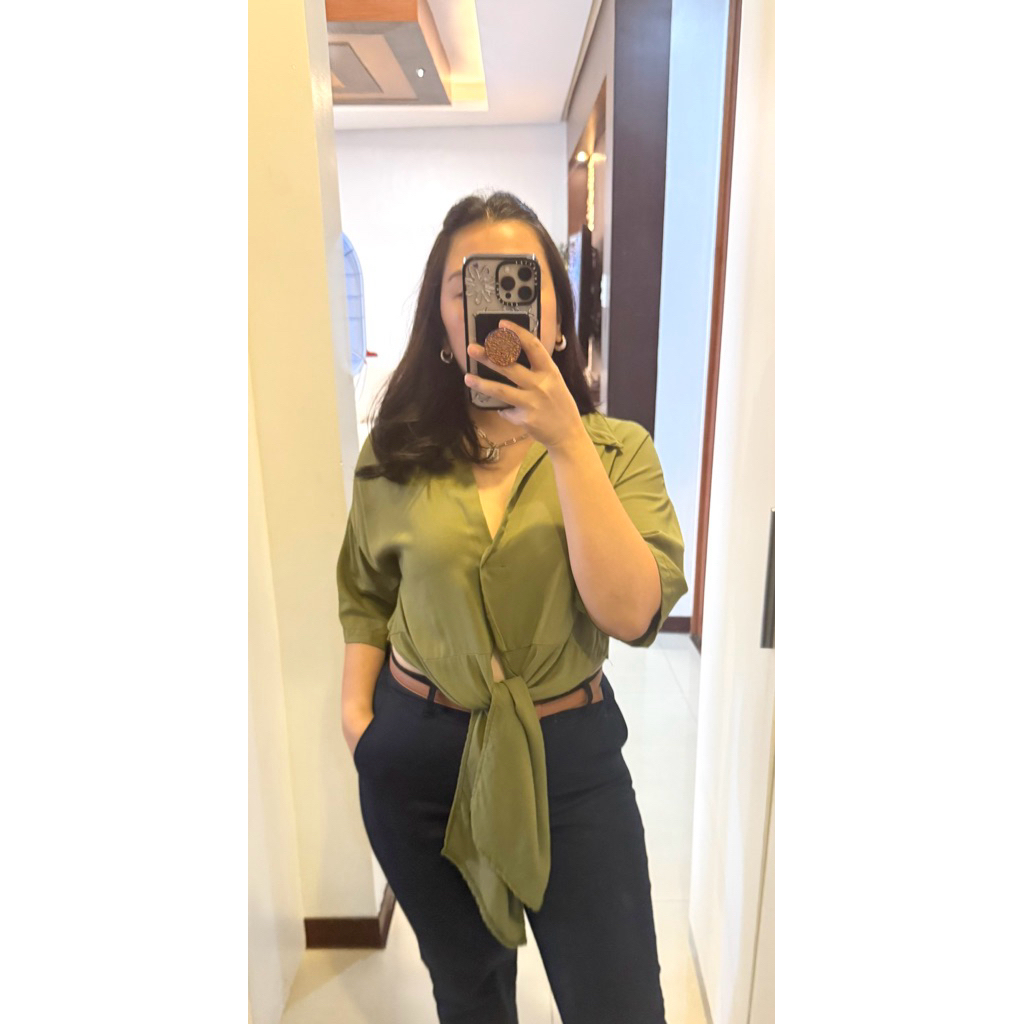 COCOBABA Clothing Freesize Eliz Linen Vneck 3/4 Polo Crop with Tie Polo Shirt Women