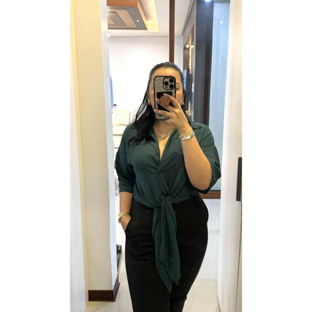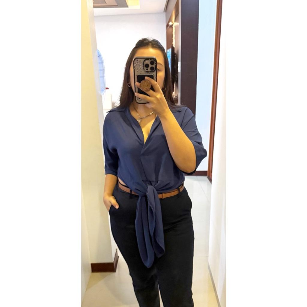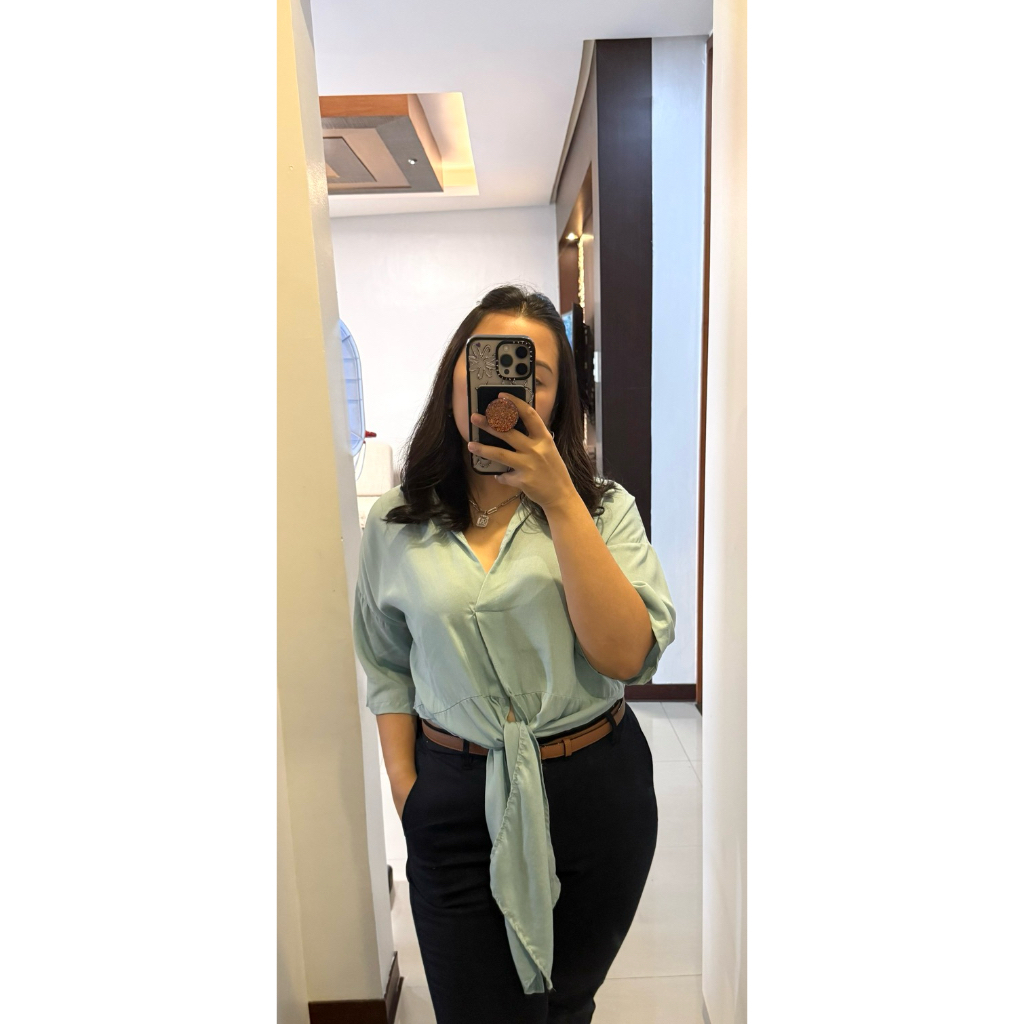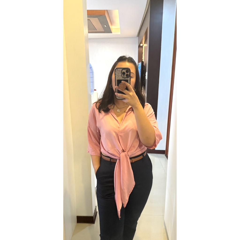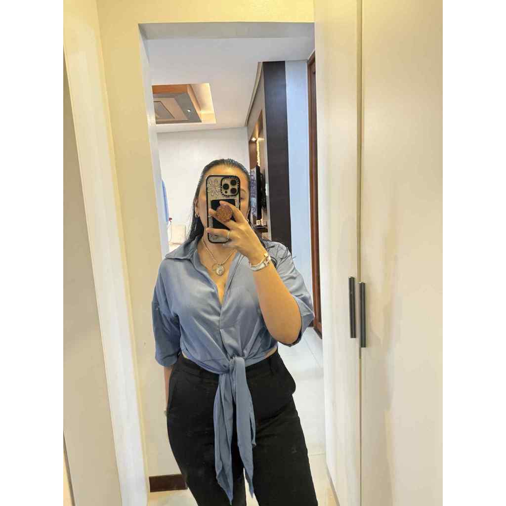 COCOBABA Clothing Freesize Eliz Linen Vneck 3/4 Polo Crop with Tie Polo Shirt Women