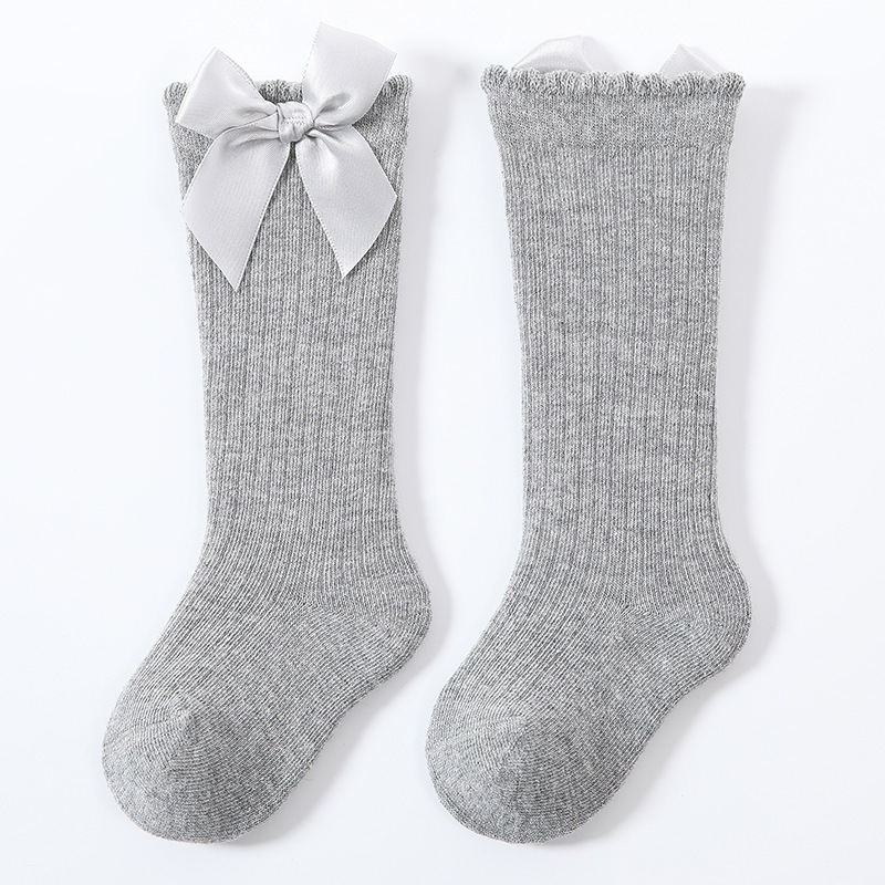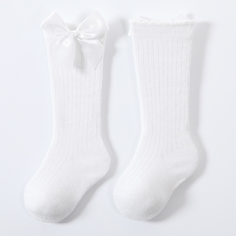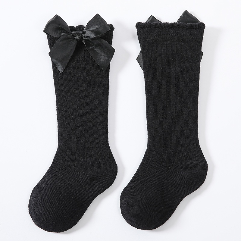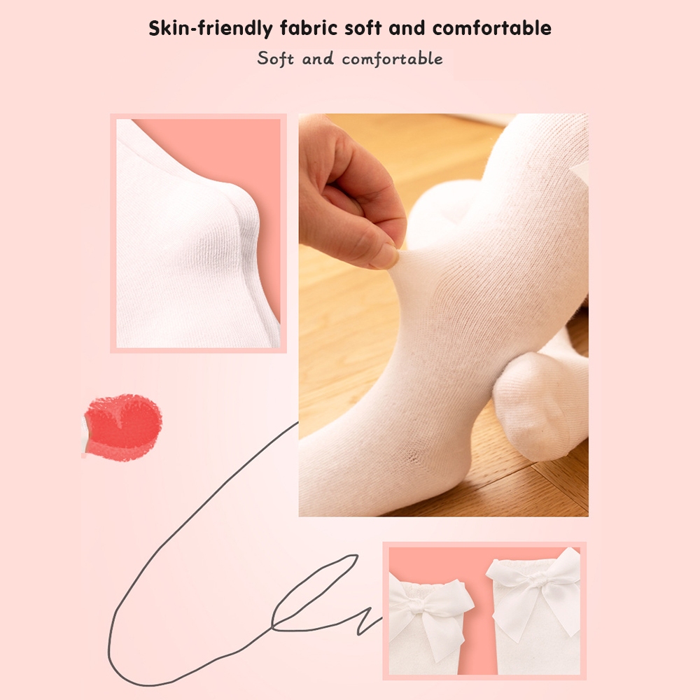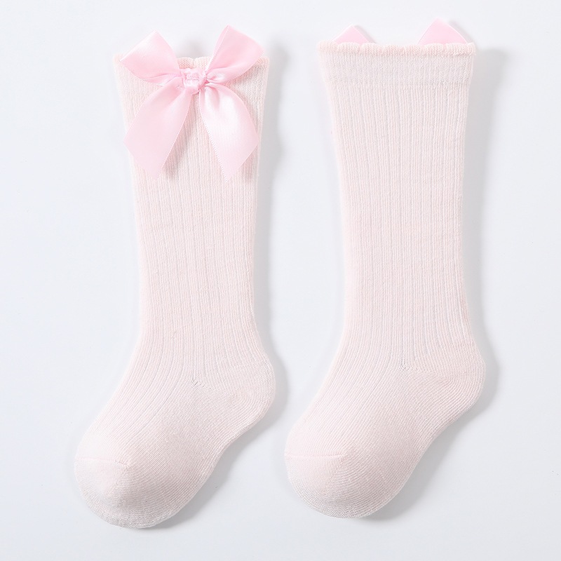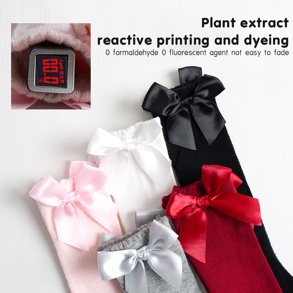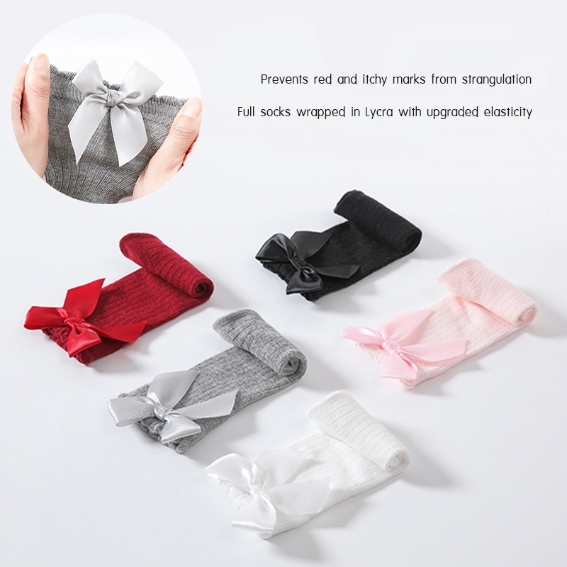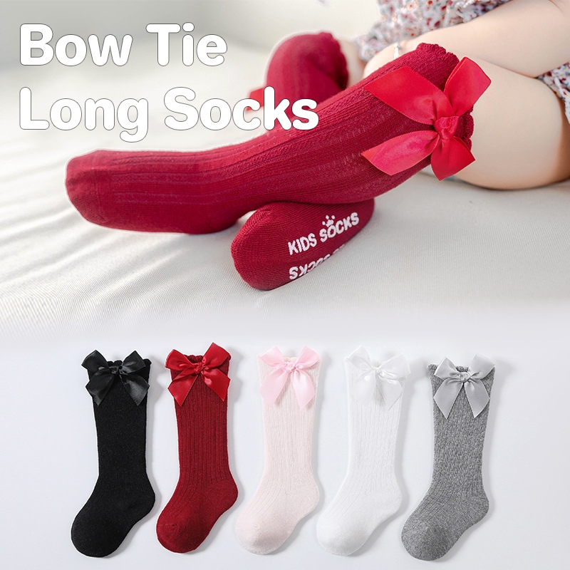1Pair Knee-High Long Socks Baby Girl Cotton Tube Bow Knot Tie Ribbon Non-Slip Kid Socks