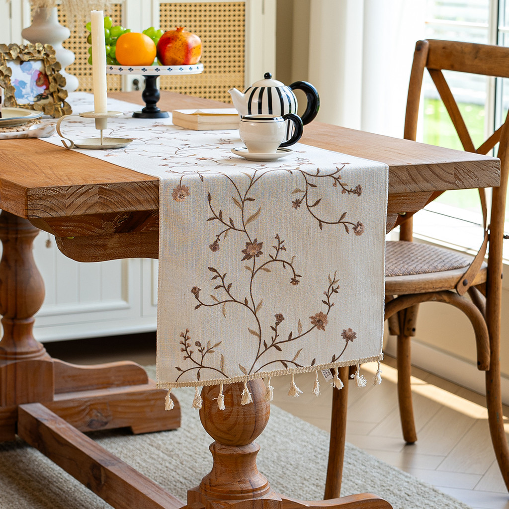 Dustproof Table Cloth Polyester Material Floral Pattern Table Runner Perfect for Home/Dining Table Decoration Table Cover