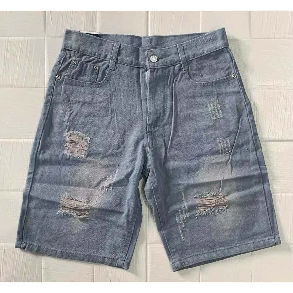 New 2024 Maong Korean Fashion Casual Denim Shorts light Tattered For Men Hiqh Quality