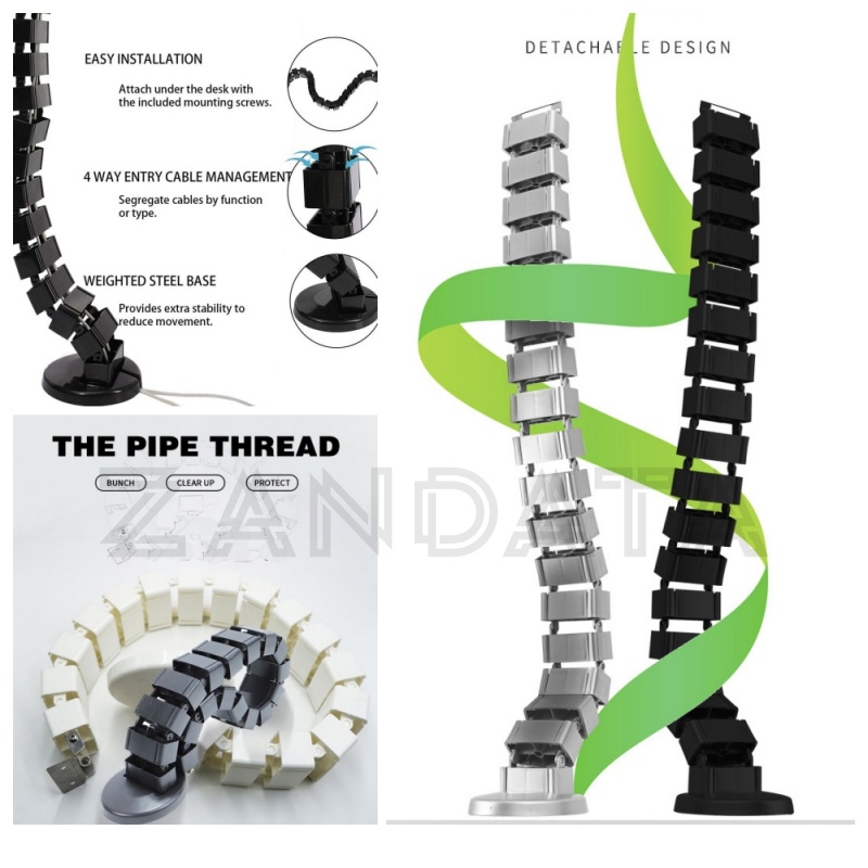 1200mm Spine Shape Cable Management Square Line Pipe for Height Adjustable Table Threaded Under Desk Cable Organizer Wire Organiser