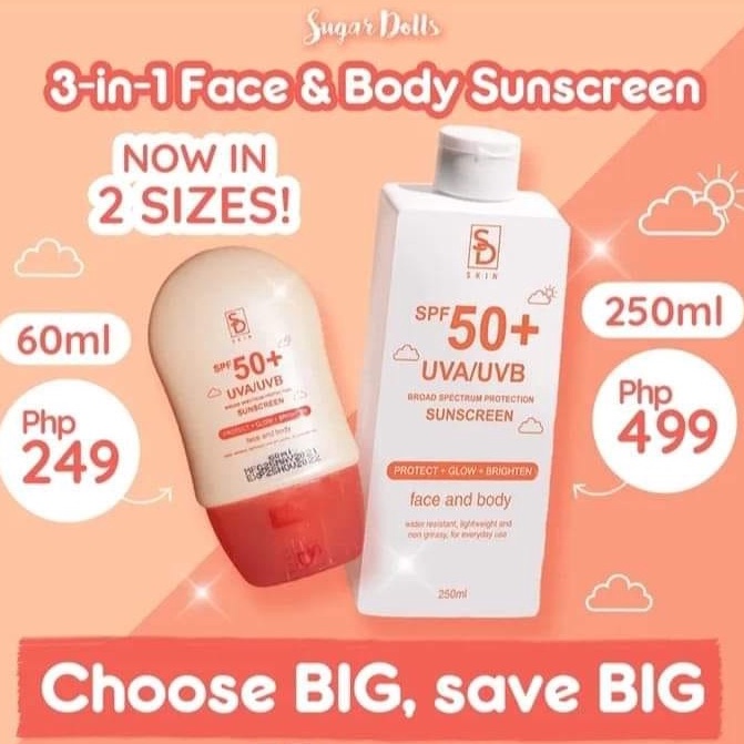 3in1 Face & Body Sunscreen by Sugar Dolls Sugardolls 3-in-1 Face and body Sun screen